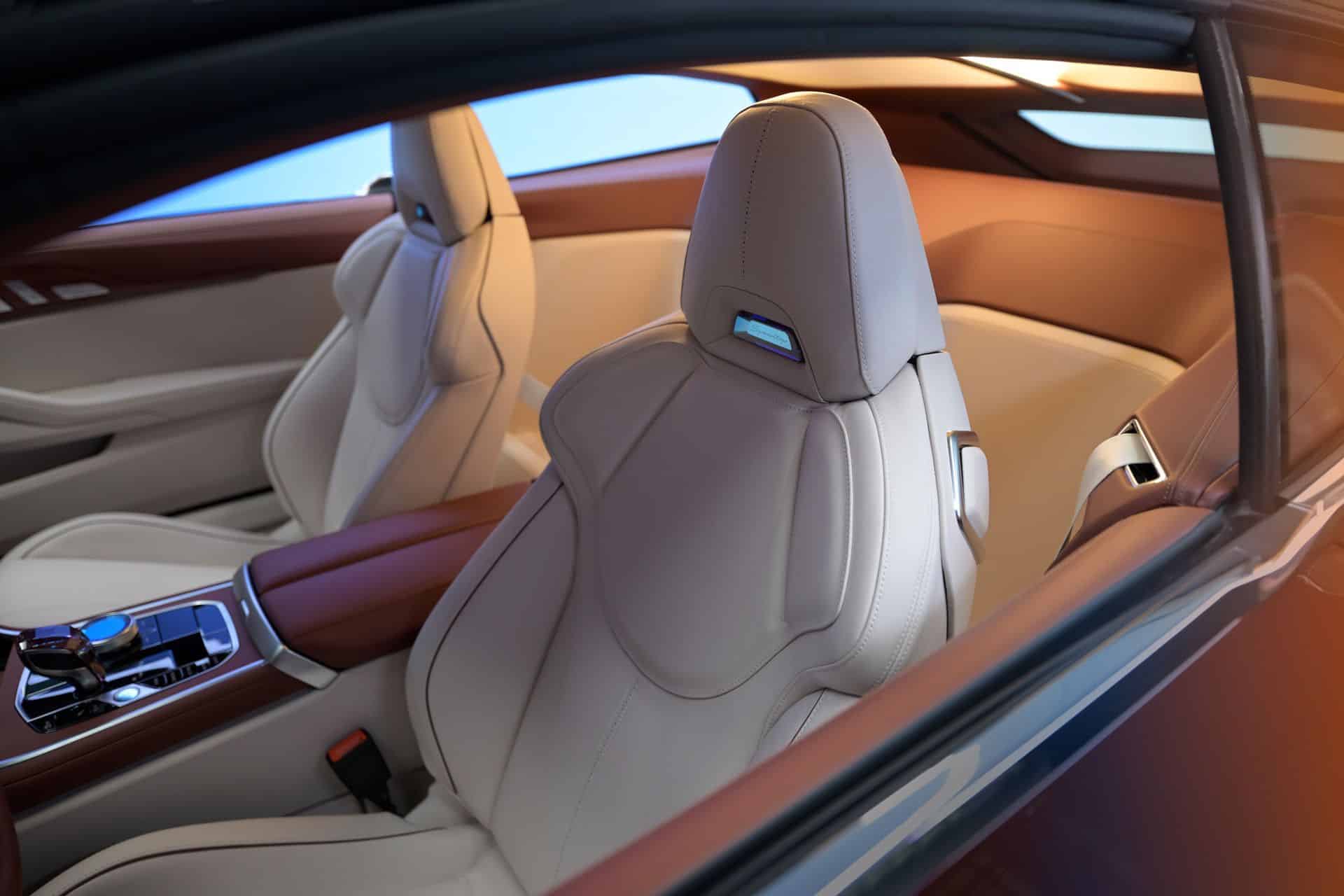 You might not immediately realize it’s based on the M8 until you step inside. The upscale cabin is instantly familiar, now finished in a more luxurious two-tone leather that extends into the cargo area. BMW echoed the exterior’s roof ridge inside with illuminated strips that split the headliner in two. Another light band surrounds the luggage space.