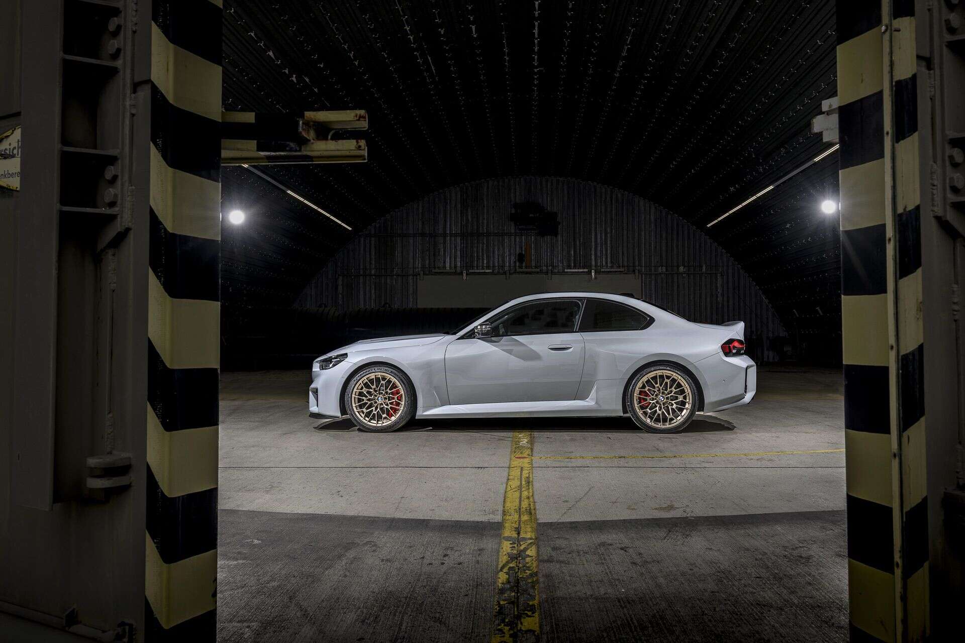 Let’s talk weight. BMW has removed 97 pounds for the version sold in the US, where it tips the scales at 3,770 lbs. In Europe, the car has lost 30 kilograms, reducing its weight to approximately 1,700 kg without a driver. Since this isn’t a CSL, the rear seats remain in place. Engineers achieved the weight savings through a variety of carbon fiber components and forged 19-inch wheels. The flashy shoes come in matte Gold Bronze.
