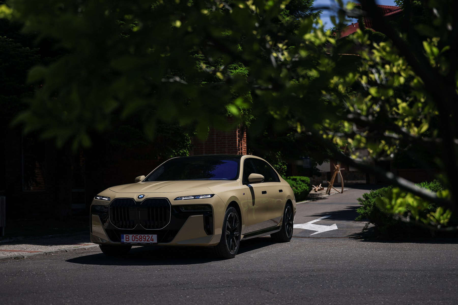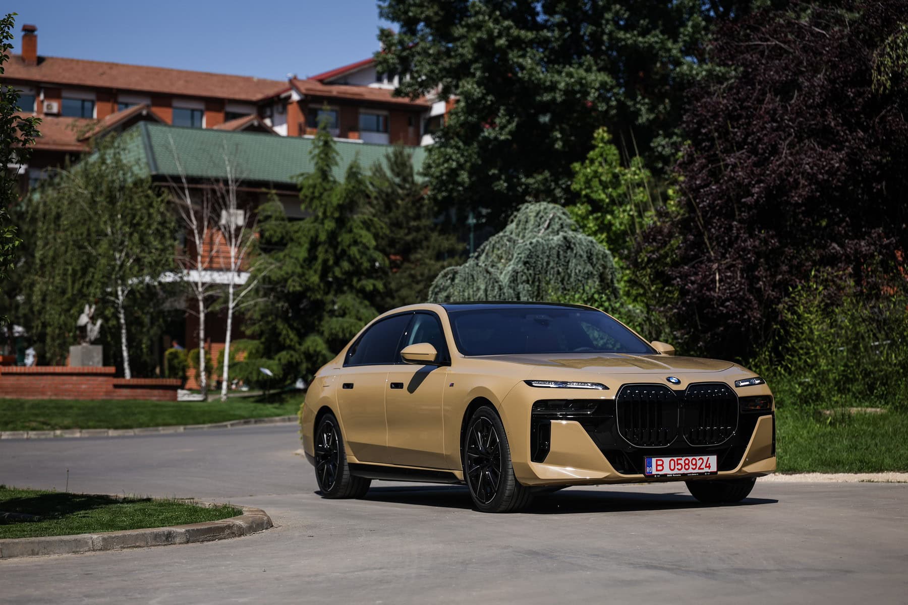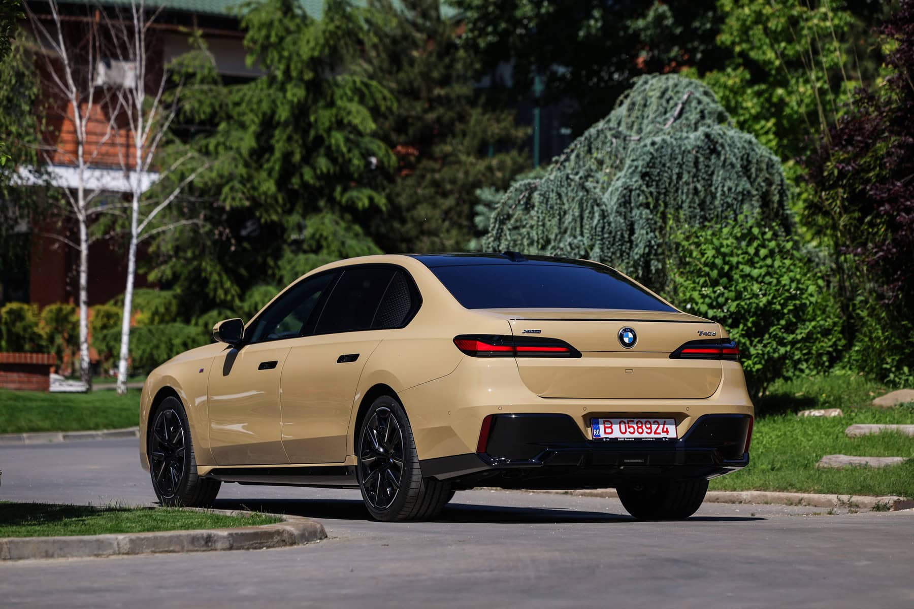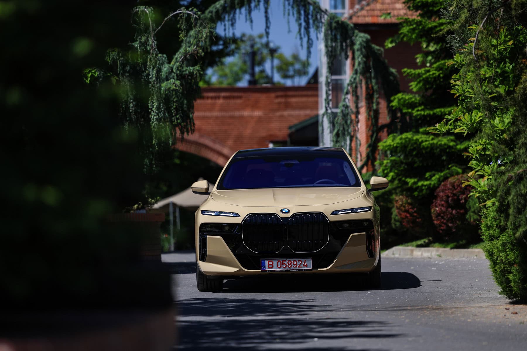 The beige/cream-like shade is contrasted by black body accents from the M Sport Pro Package, a €3,792 option in Romania. As for the wheels, the two-tone “909 M” set measures a stately 21 inches. It’s a lot to take in, but then again, even a standard 7 Series doesn’t exactly blend into the background.