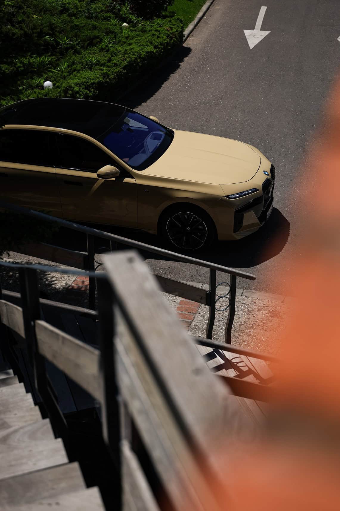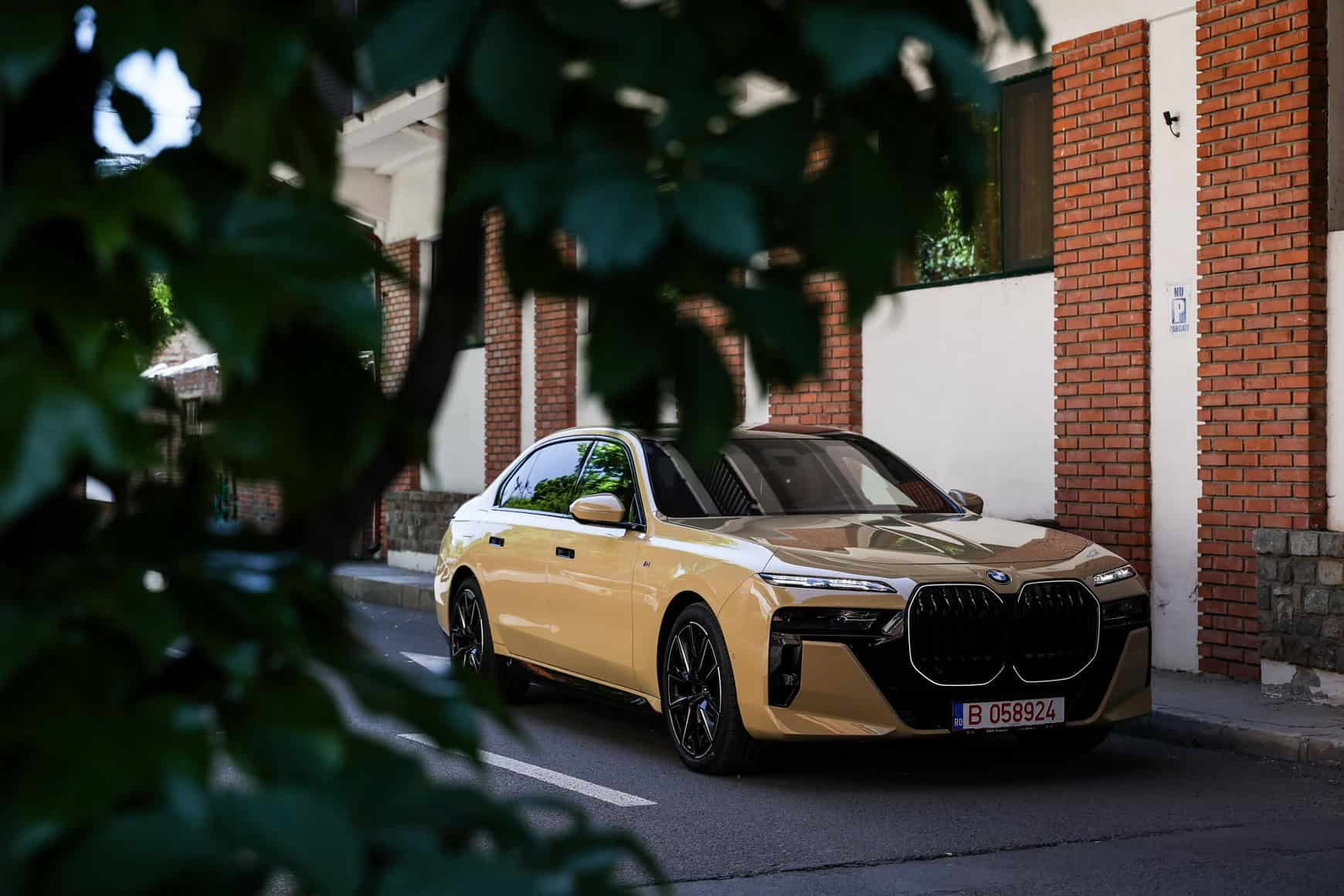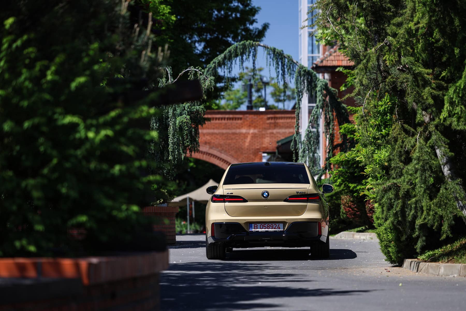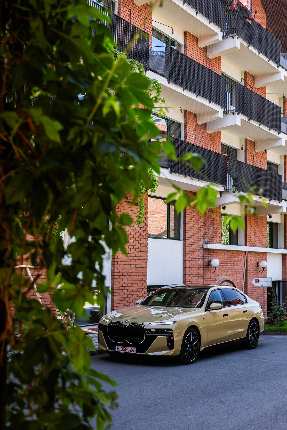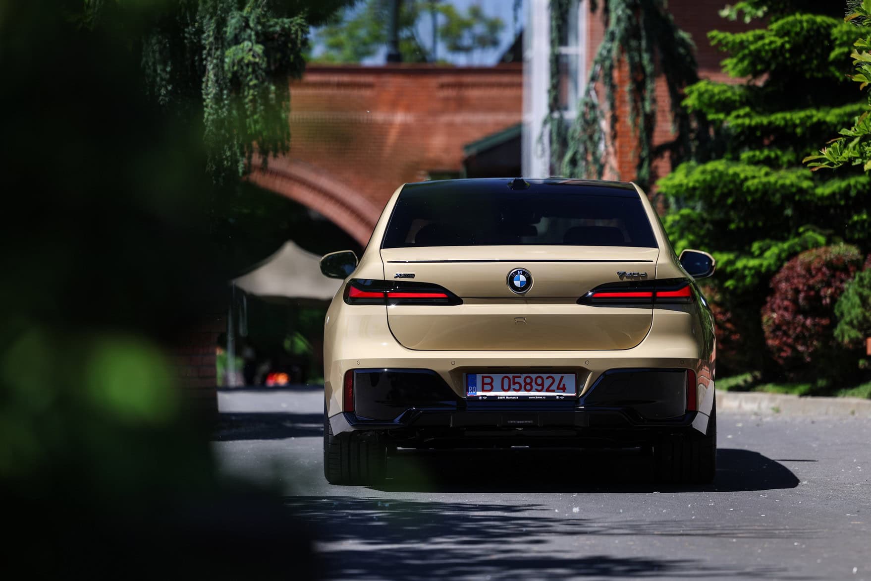 The beige/cream-like shade is contrasted by black body accents from the M Sport Pro Package, a €3,792 option in Romania. As for the wheels, the two-tone “909 M” set measures a stately 21 inches. It’s a lot to take in, but then again, even a standard 7 Series doesn’t exactly blend into the background.