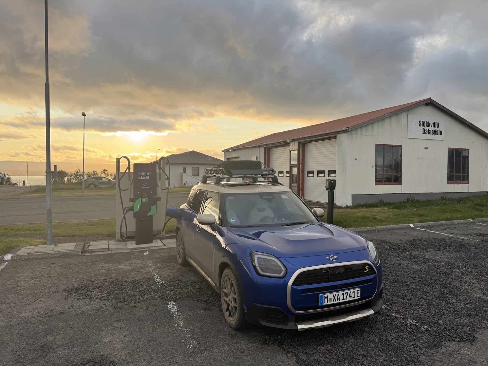 Because one or two standardized european charging apps won’t work in Iceland. Ionity, EnBW, or Aral Pulse – local providers, and above all On Charging, are in demand here, because unlike the magnificent 300 and 400 kW charging stations in Denmark, not all stations accept credit cards. It’s not cheap either – between €0.31 and €0.87 per kilowatt hour are charged to power up the family MINI. The manageable charging speed of the mileage-hungry car isn’t significant, because the charging station often limits charging power to 50 kW, and outside of Reykjavik, charging power up to 150 kW is rarely available.
