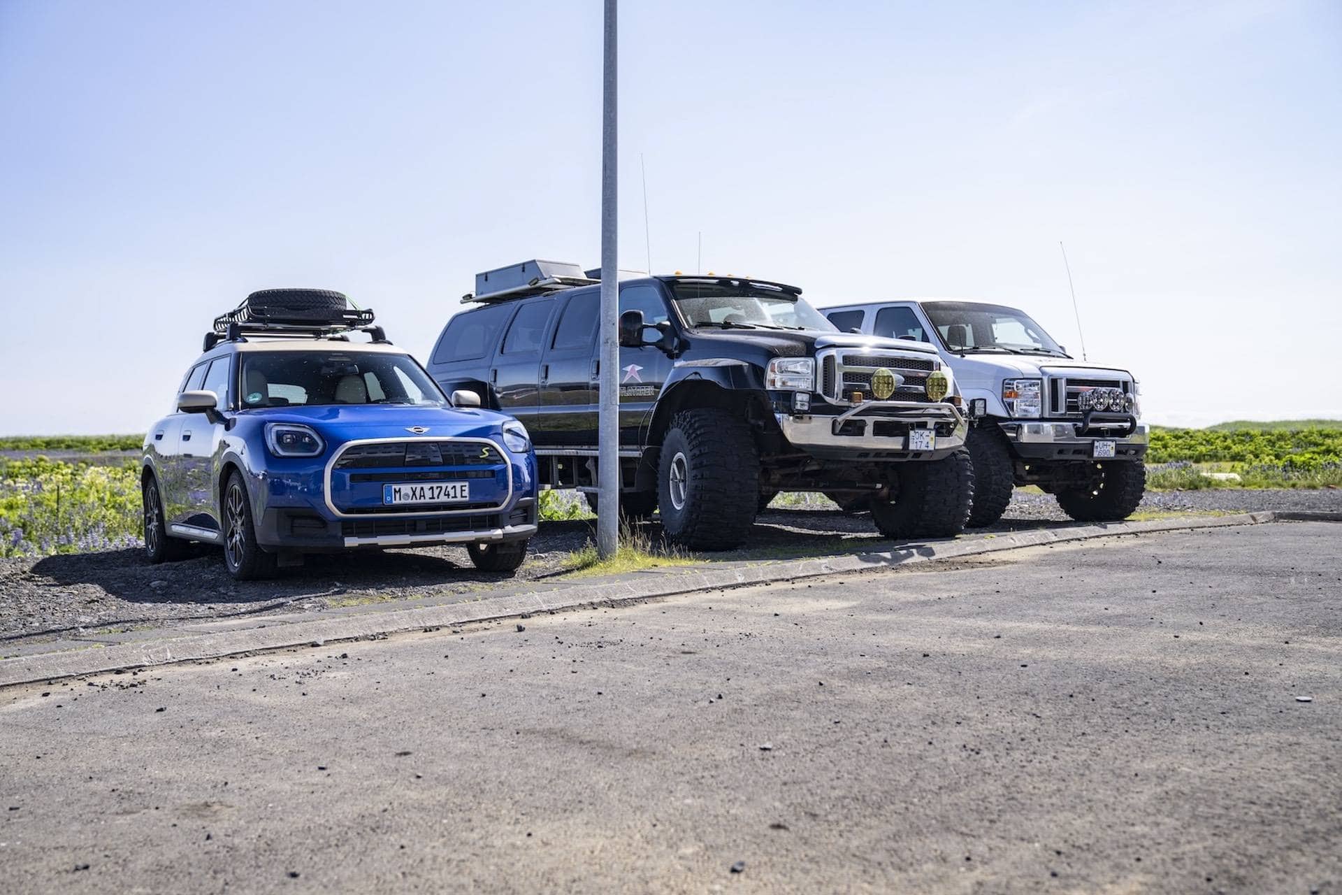 80 percent of all roads in Iceland are unpaved, and even though the Ring Road was paved some years ago, a tour with a regular vehicle is highly not recommended. While most tourists prefer to explore the island on paved roads in white rental cars, such as the Dacia Duster 4×4, and true off-road enthusiasts travel in Defenders, G-Classes, Patrols, or specially upgraded expedition vehicles, the long journey is made in a MINI Countryman SE All4 – electrically powered and slightly upgraded.