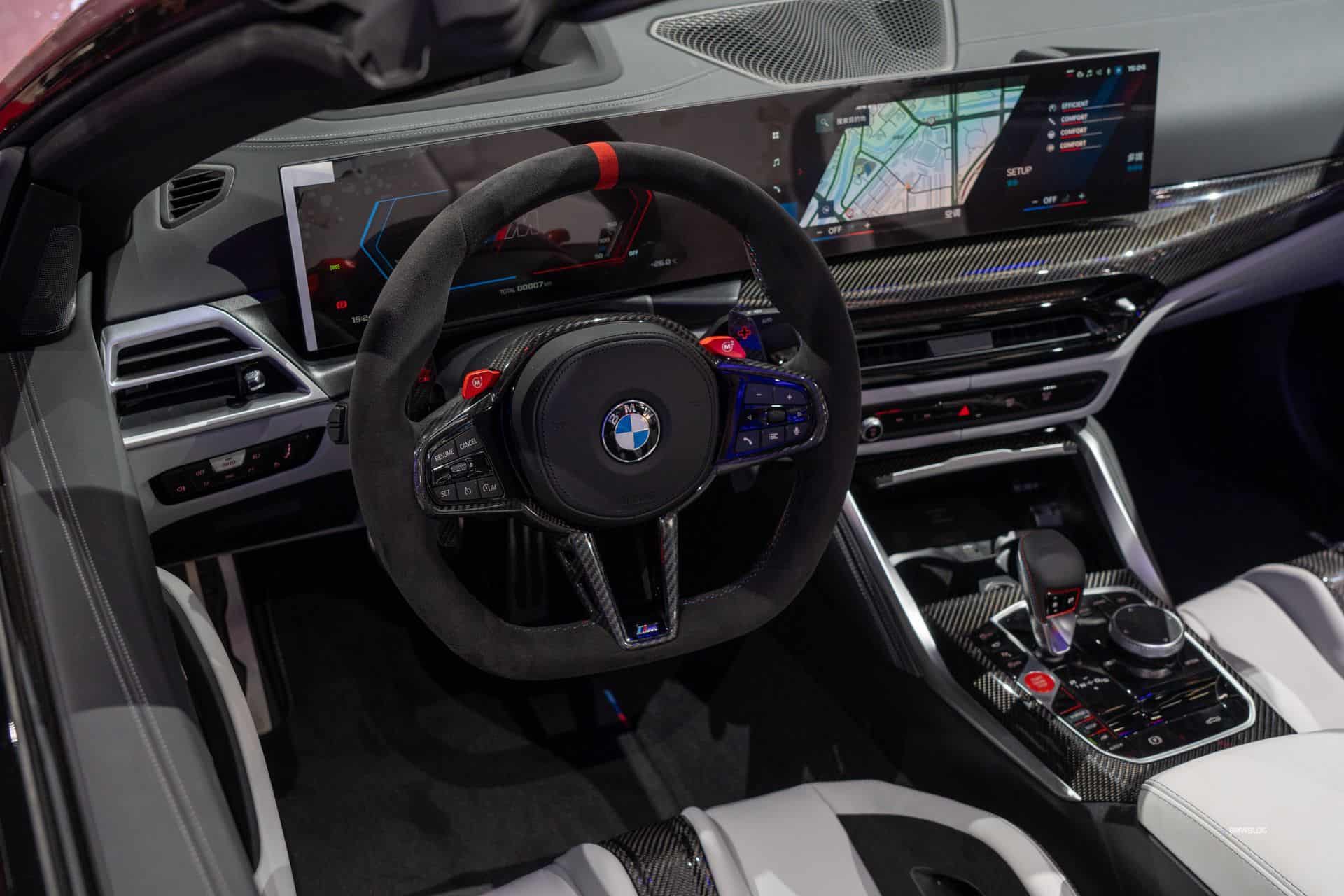 With just 15.5 cubic feet of cargo space available, the 2026 BMW M4 isn’t the best choice for hauling. That said, the split-folding rear seats do open things up a little, although that’s a feature reserved for coupes. Convertibles have even less space in the rear, but that’s not exactly the point. The Mercedes-AMG CLE has 14.5 cubic feet, which is probably a little bit more than the M4 Convertible, but the heavier and larger AMG will have some trade-offs dynamically.