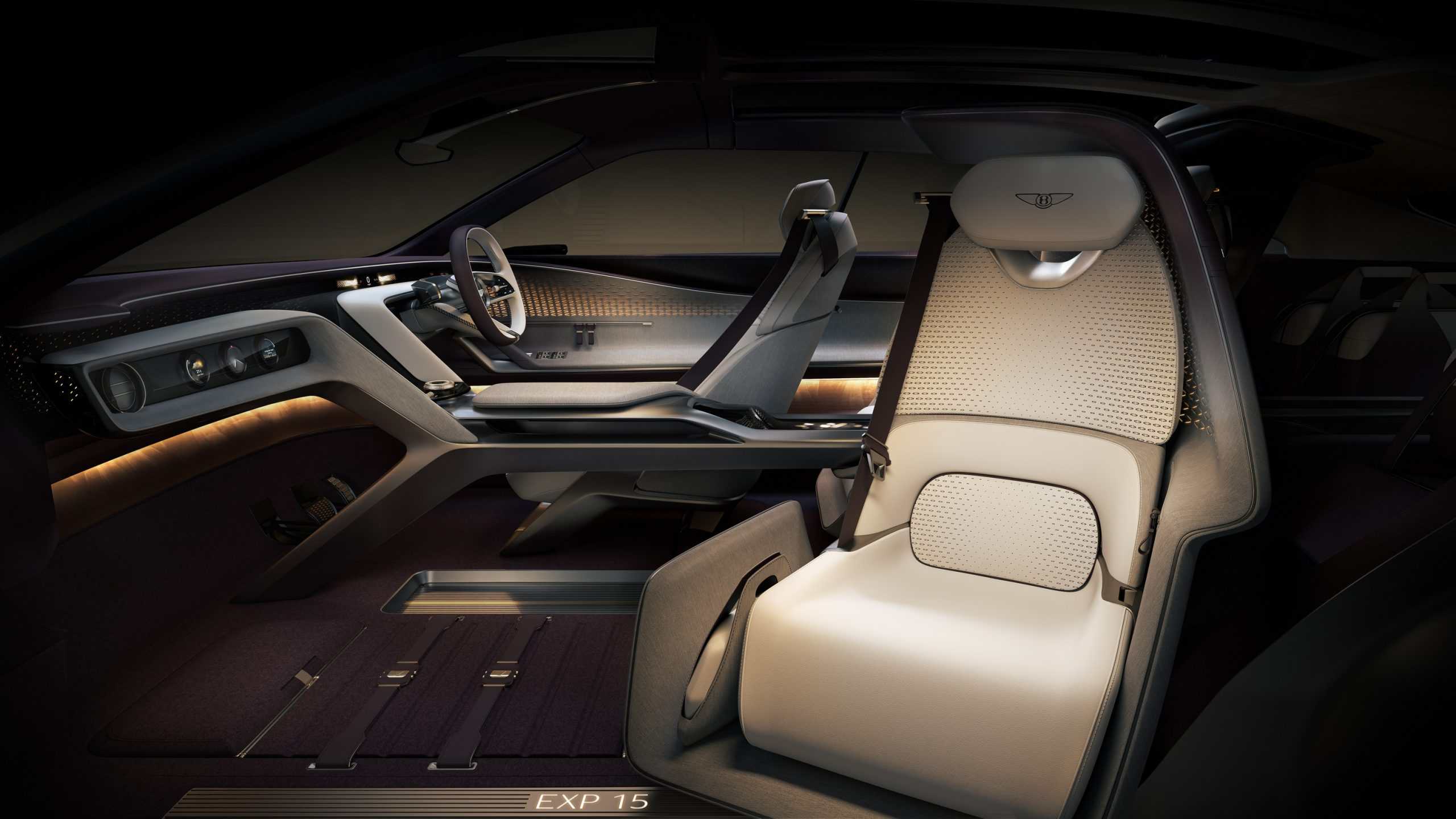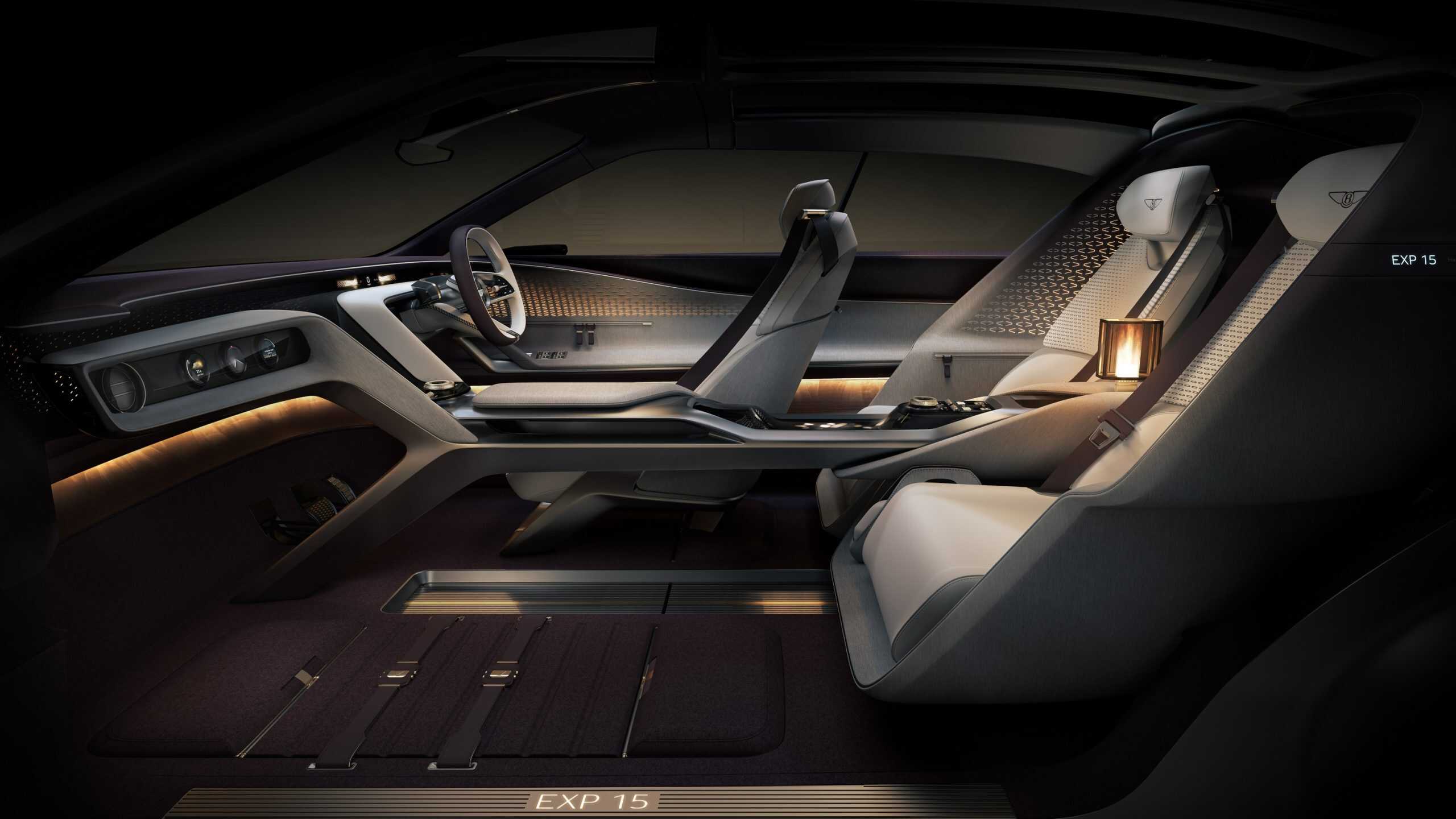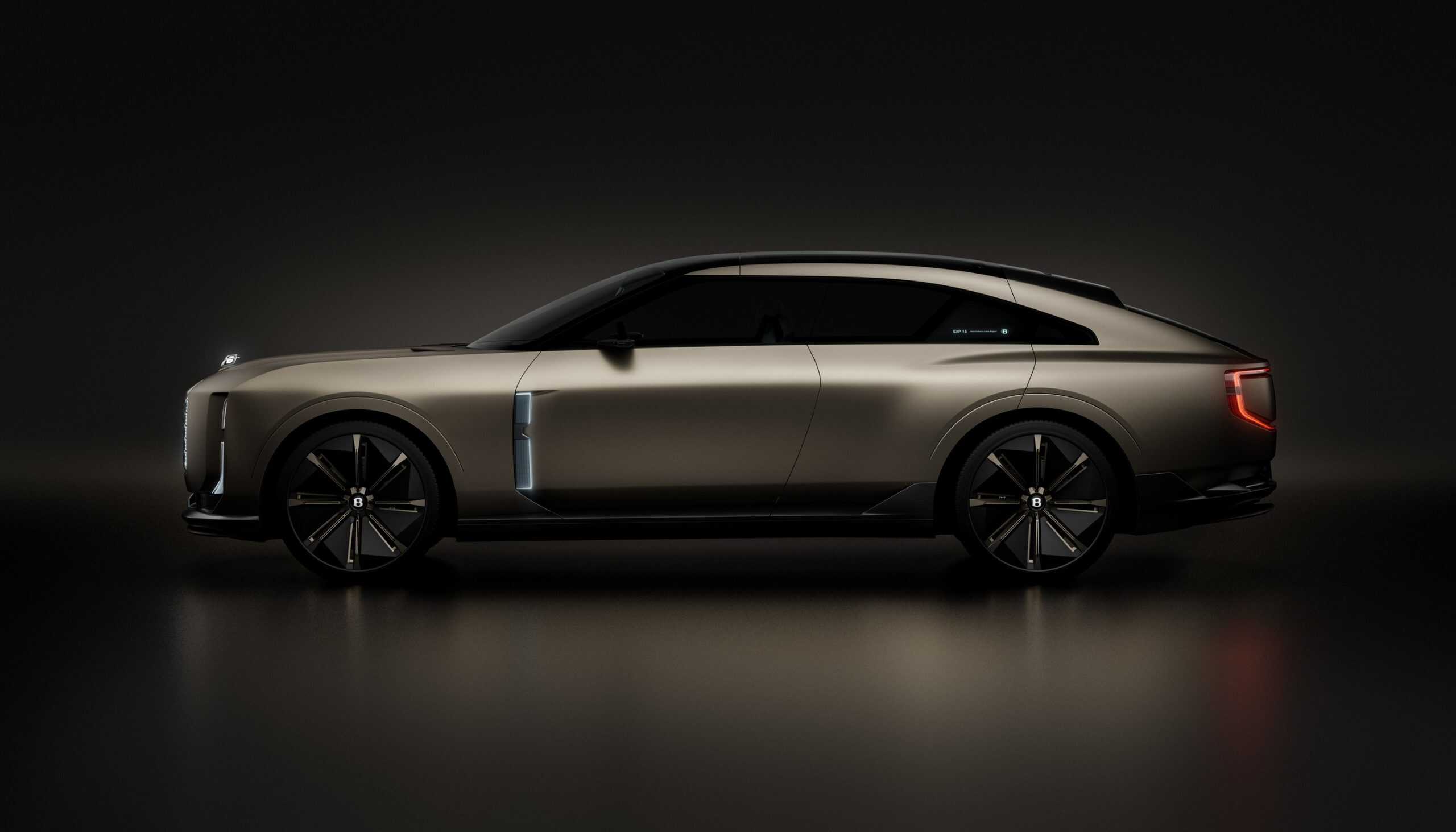 The EXP 15’s profile depicts a high-riding coupe akin to the Spectre, but Bentley refers to it as a sedan. It’s no ordinary saloon, featuring an asymmetrical design with three doors. A closer look reveals two doors on the passenger side, which is on the left since Bentley is a British automaker. There’s only one door on the driver’s side, as if the exterior wasn’t already bold enough.