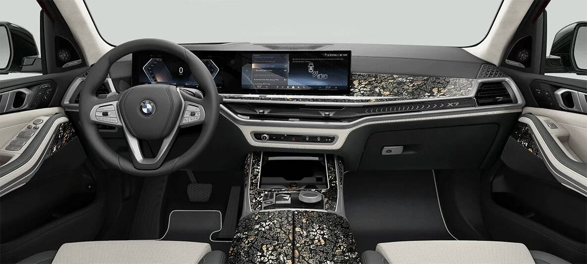 That extra fee offers more than just a dual-tone paint job. Echoing the Nishiki Lounge concept, this limited-run X7 comes with exclusive trim elements never before seen on a production BMW. Buyers can choose from 12 traditional patterns, each incorporating foil decoration across the dashboard, center console, and door panels.