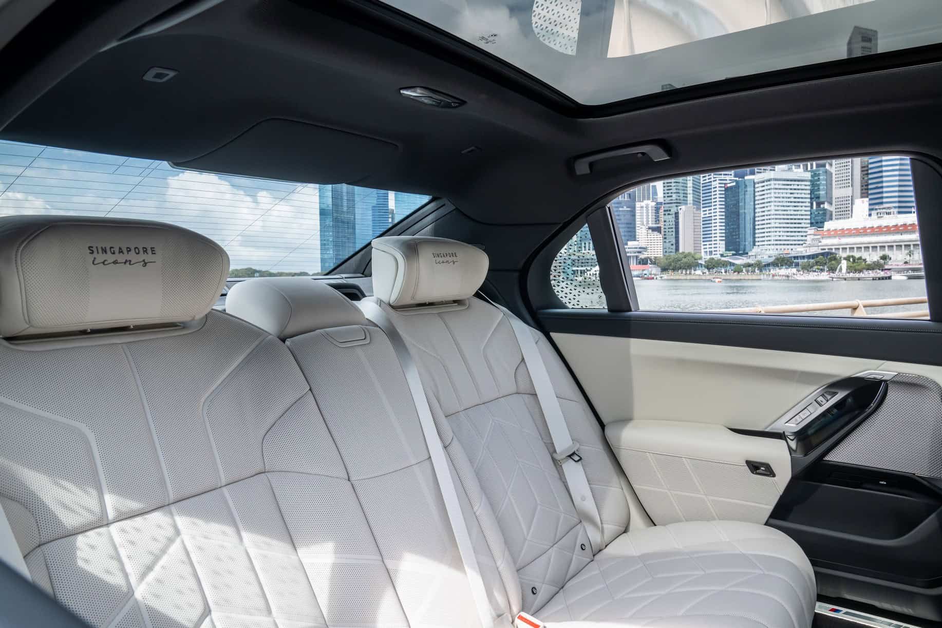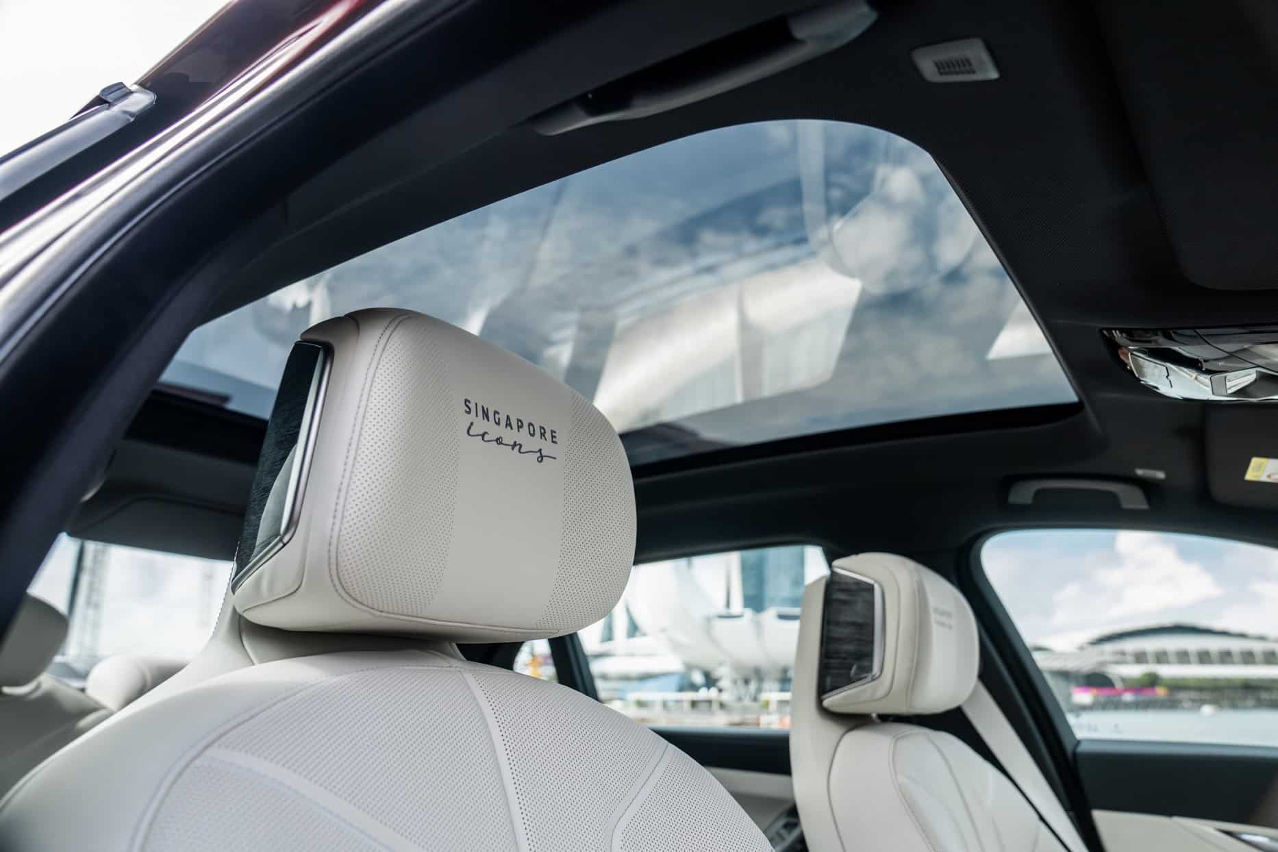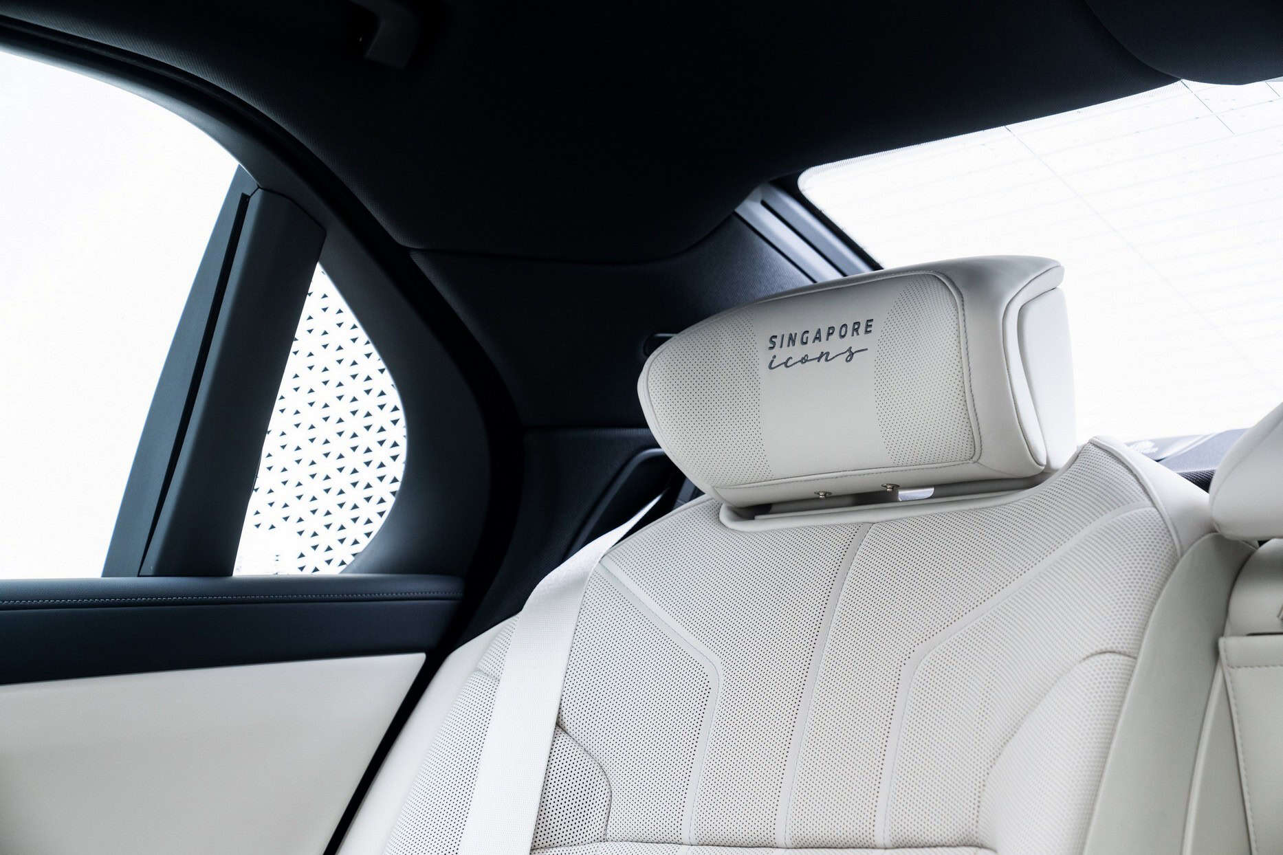 Look closer and you’ll notice a Singapore Icons logo laser-etched into the Hofmeister kink. Much like the body color, the 21-inch wheels are also sourced from the Individual catalog. The two-tone alloys (codenamed 1055) feature an eye-catching 20-spoke design and a diamond-cut finish.