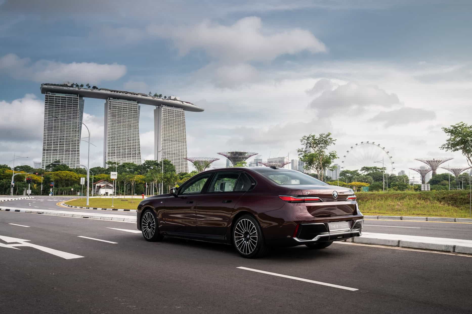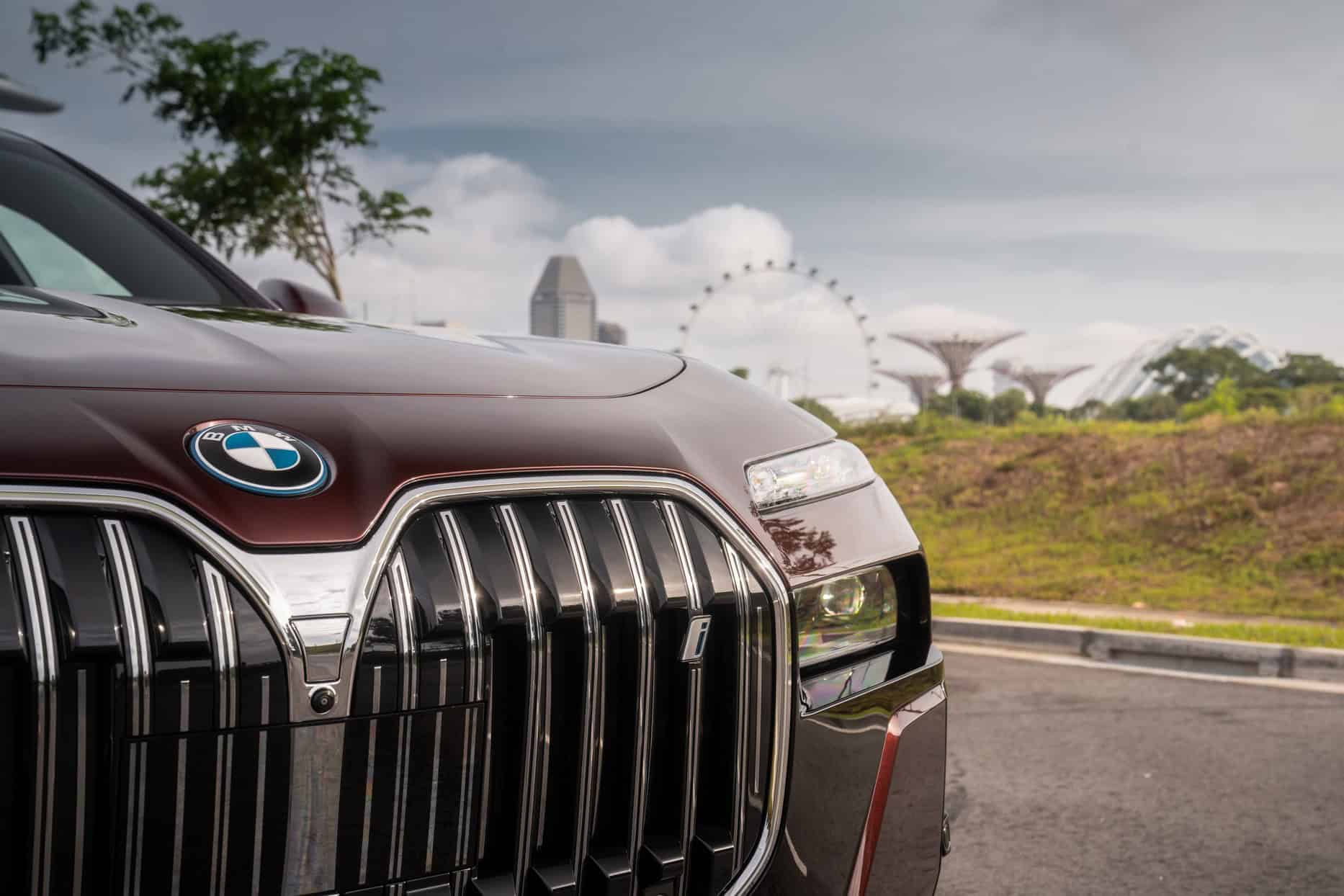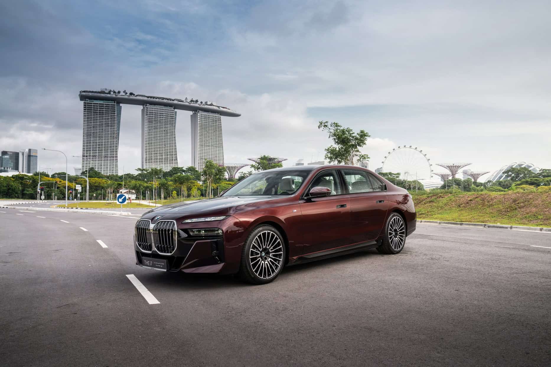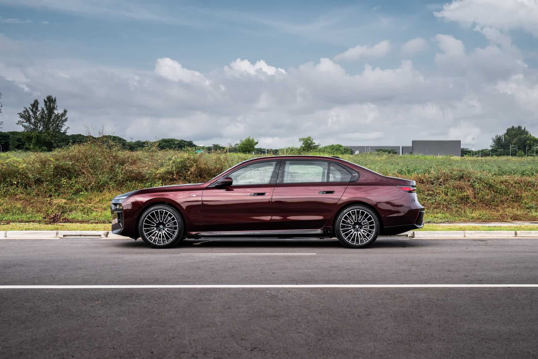BMW Singapore recently teased us with a one-off 7 Series, and now it’s ready to show the special G70. Based on the fully electric i7 in rear-wheel-drive, single-motor form, this eDrive50 features an Individual paint finish. Borrowed from Rolls-Royce’s color palette, Madeira Red Metallic carries the internal codename “R20.” It has been available on BMWs for a while, but we’ve rarely seen it applied to an actual car.