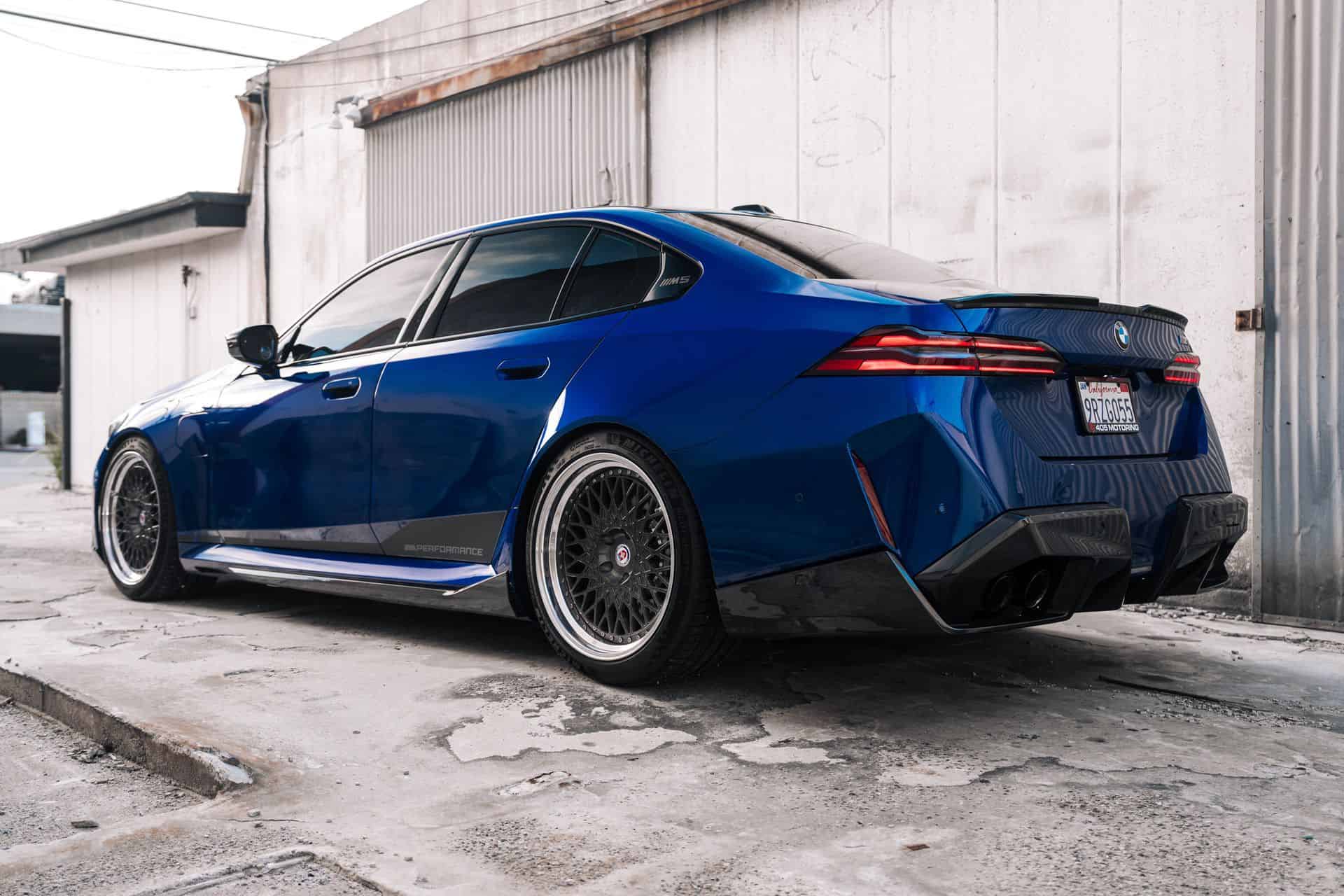 Even though some BMW fans are still skeptical of the design of the new M5, one thing is certain though: few sedans command as much presence on the road as the G90 BMW M5. This particular build takes things to an entirely new level though. Drenched in the striking Marina Bay Blue paint—first made famous by the BMW M6 and later by the XM also—this M5 blends design boldness with a splash of vintage flair, thanks to a set of bespoke HRE Vintage 501 wheels.