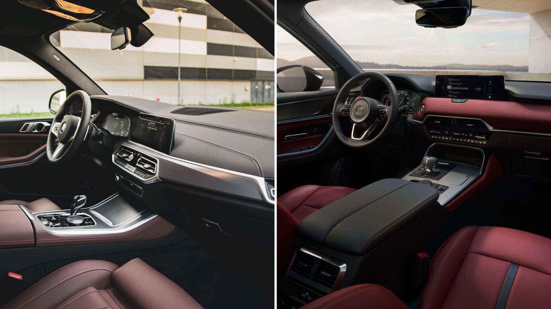 Even a base-spec X5 from 2021 feels expensive. Most used examples include leather seats, heated front and rear seats, panoramic roofs, Harman Kardon audio, and BMW’s iDrive 7 infotainment system with a digital gauge cluster. Materials and switchgear feel high-end throughout. The Mazda has a clean, modern cabin with a large center display, good materials, and a solid layout. It’s good — especially for a non-luxury brand — but the X5 xDrive45e has a slight edge on it.