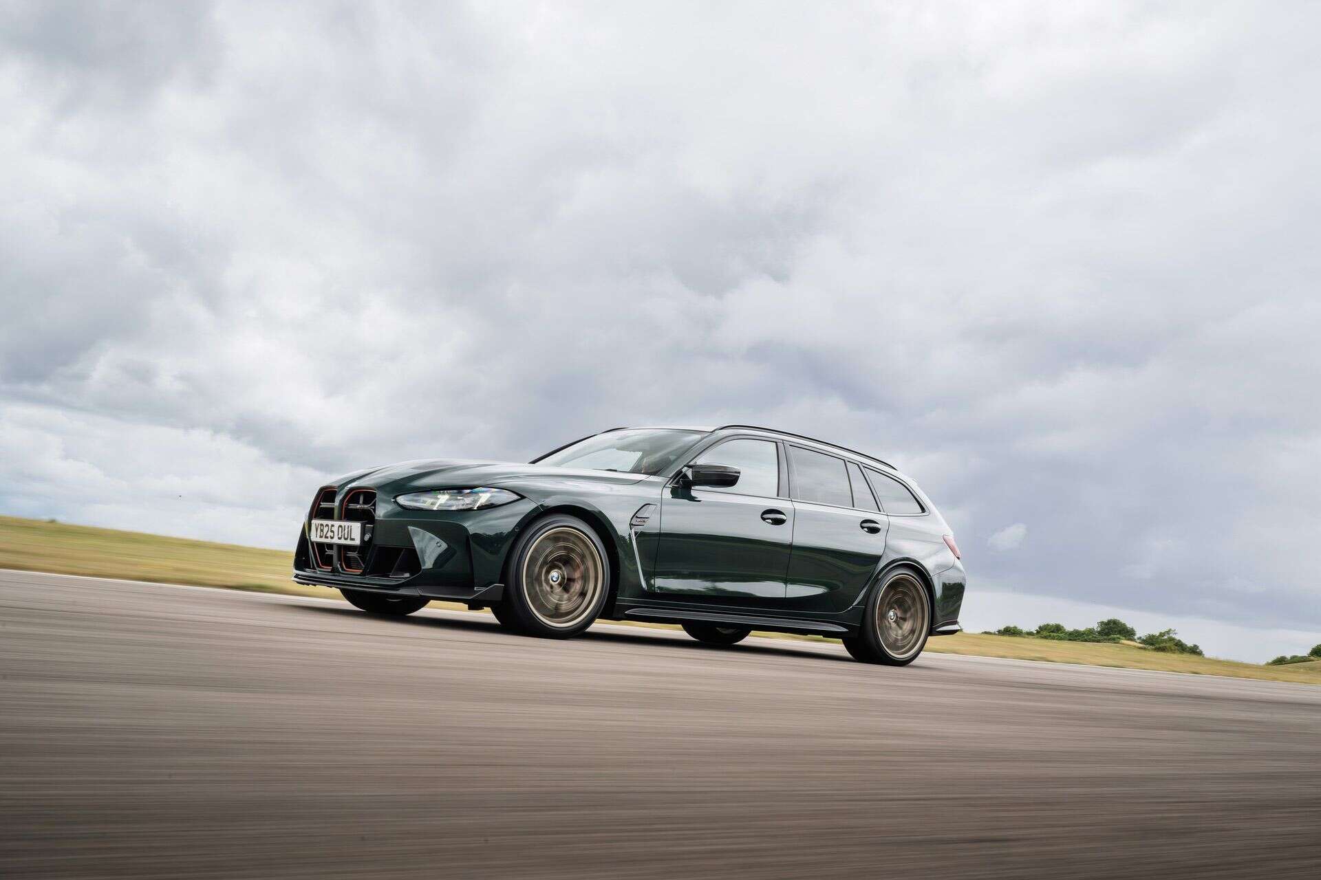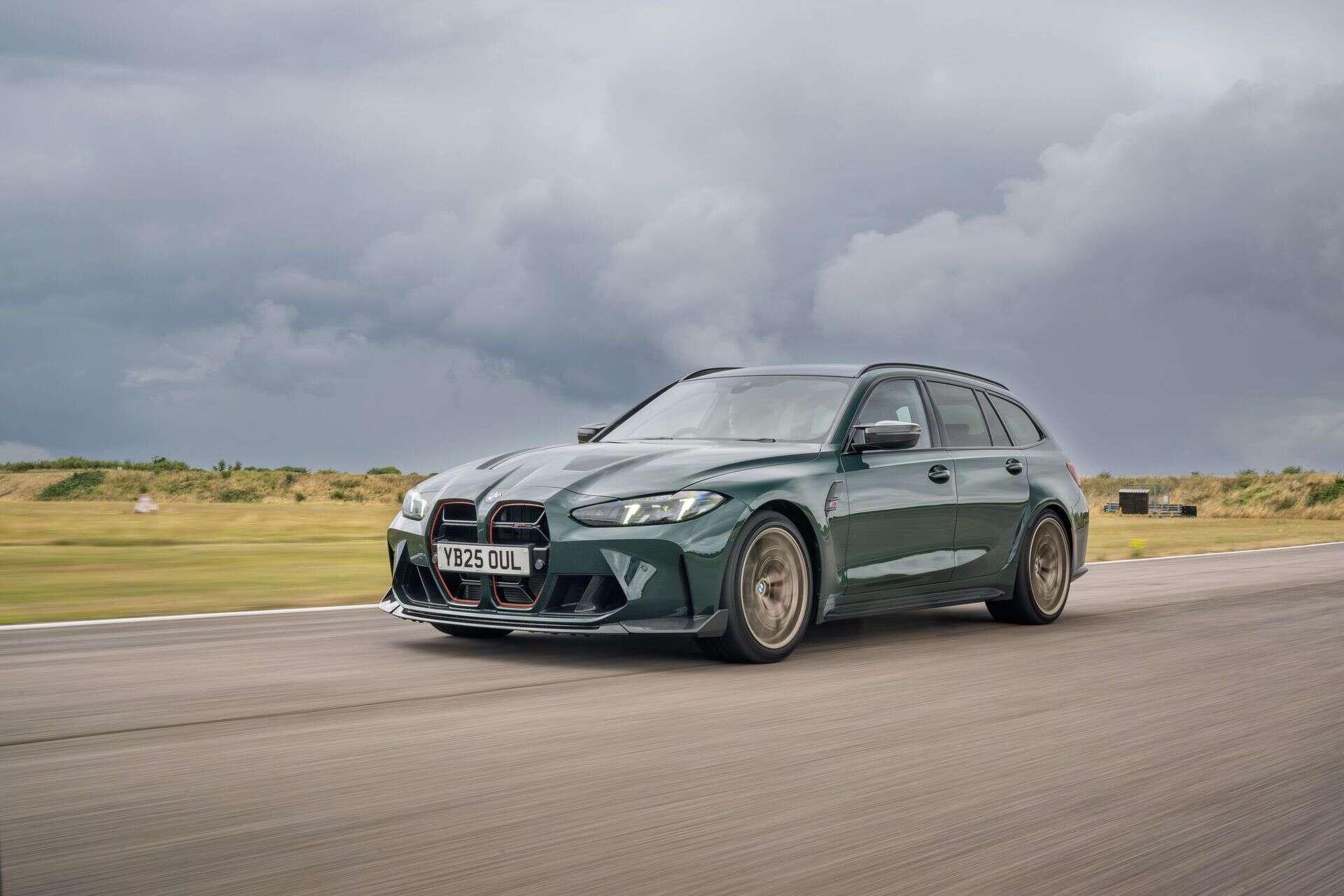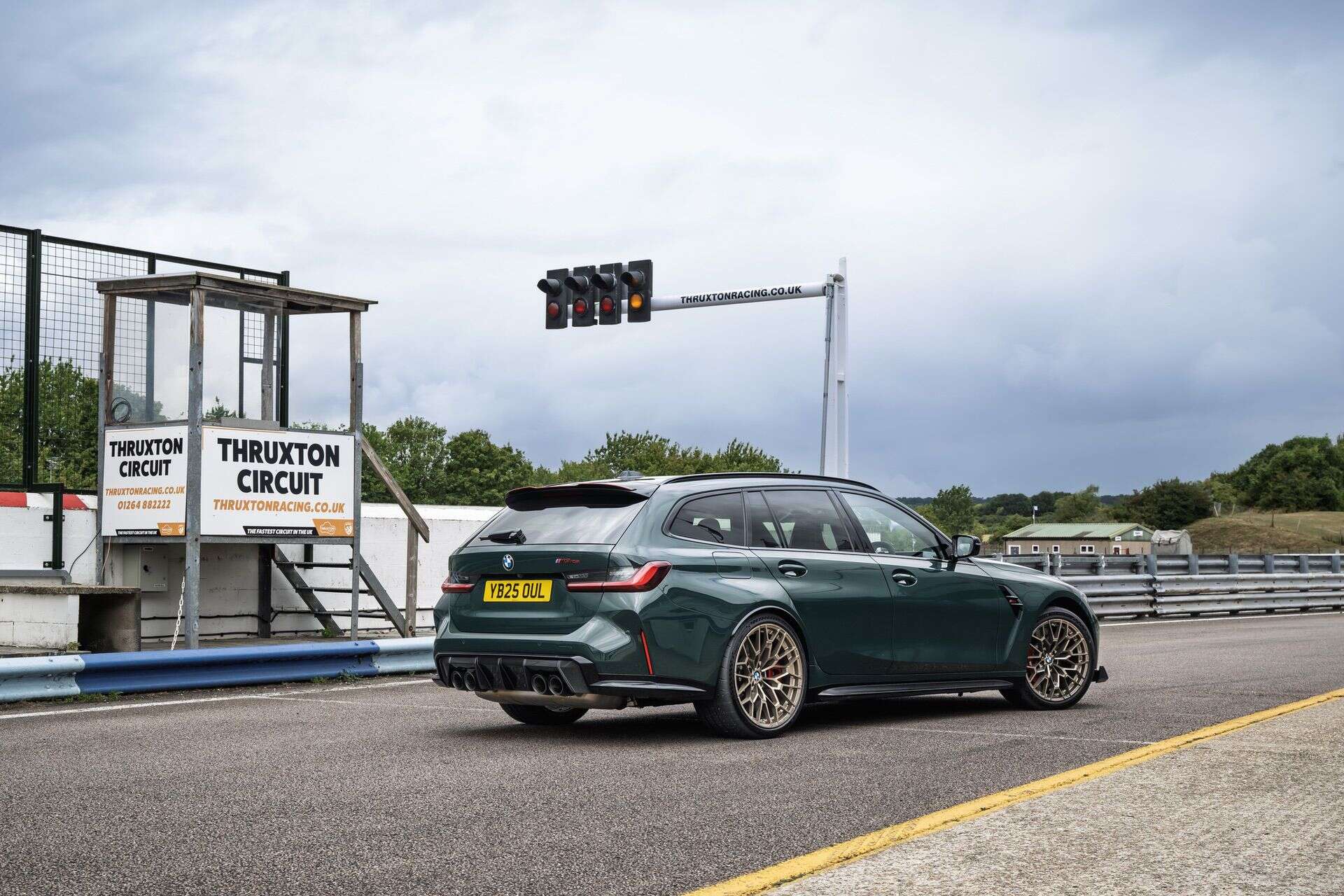 The M3 CS Touring made headlines this week after claiming the lap record for the fastest production wagon at the Nürburgring. BMW’s first Competition Sport model with a long roof has already visited another track nearly 500 miles away in the UK. The spicy G81, featuring a right-hand-drive layout, headed to the Thruxton Circuit.
