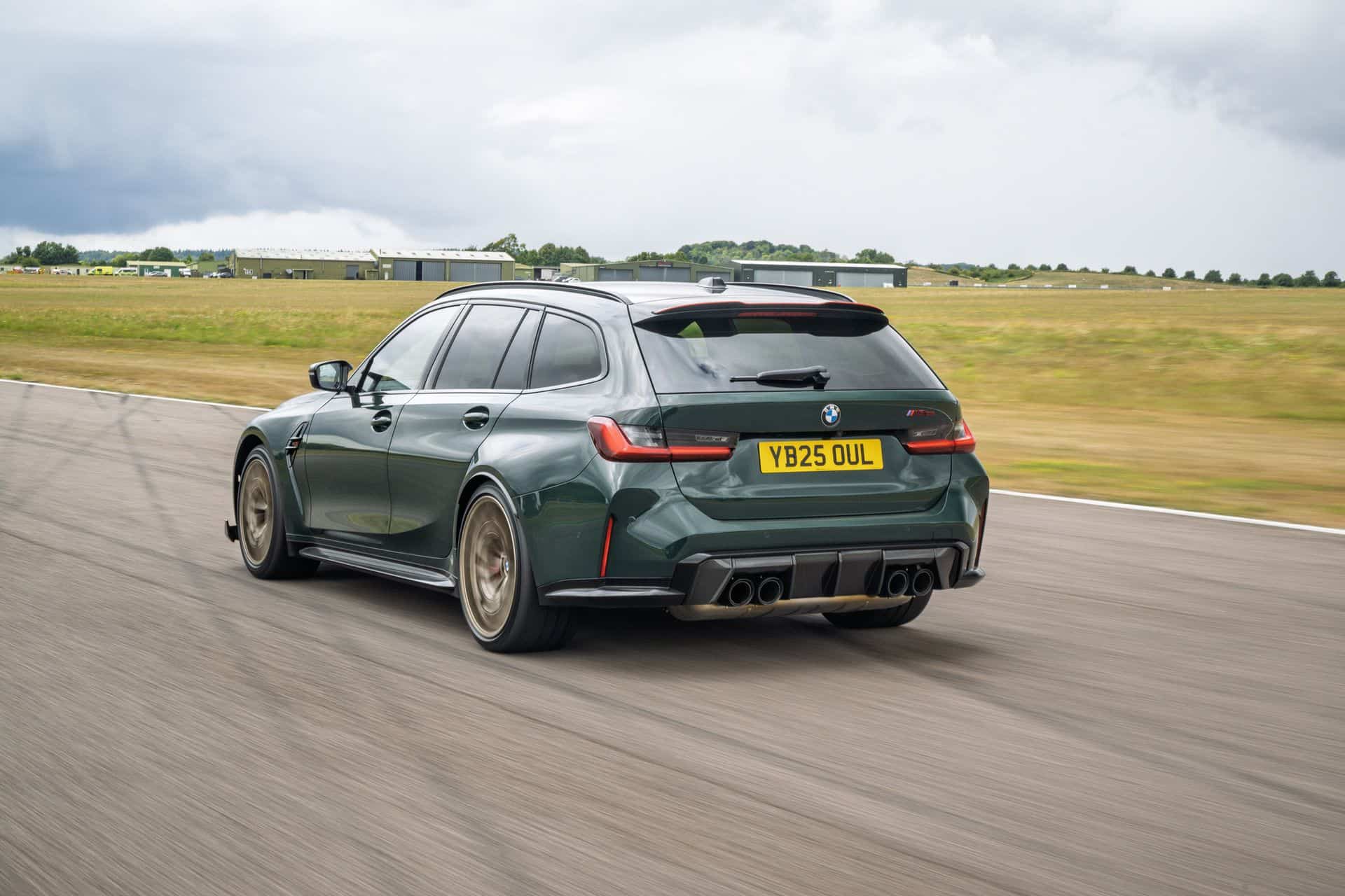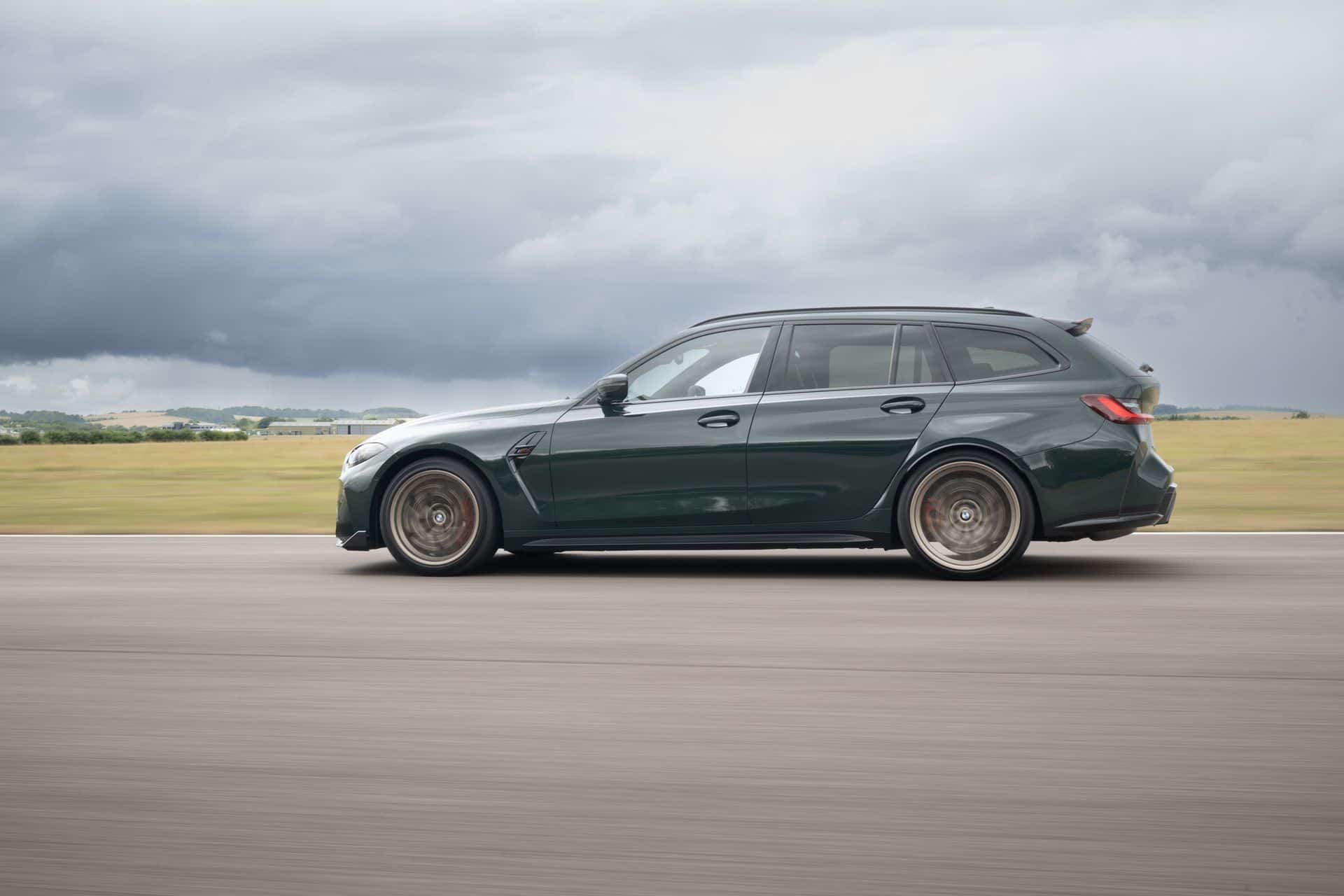 It’s actually the second time we’ve seen this fast estate painted in British Racing Green. BMW UK recently shared images of the M3 CS Touring on public roads, and now we’re admiring the car on the race track near the village of Thruxton in Hampshire. Originally built as an airfield in 1942 during World War II, the circuit was established in 1968. It’s one of the fastest in the country, allowing drivers to reach speeds of more than 186 mph (300 km/h).