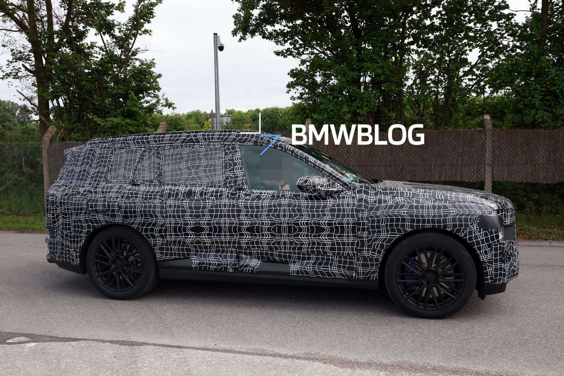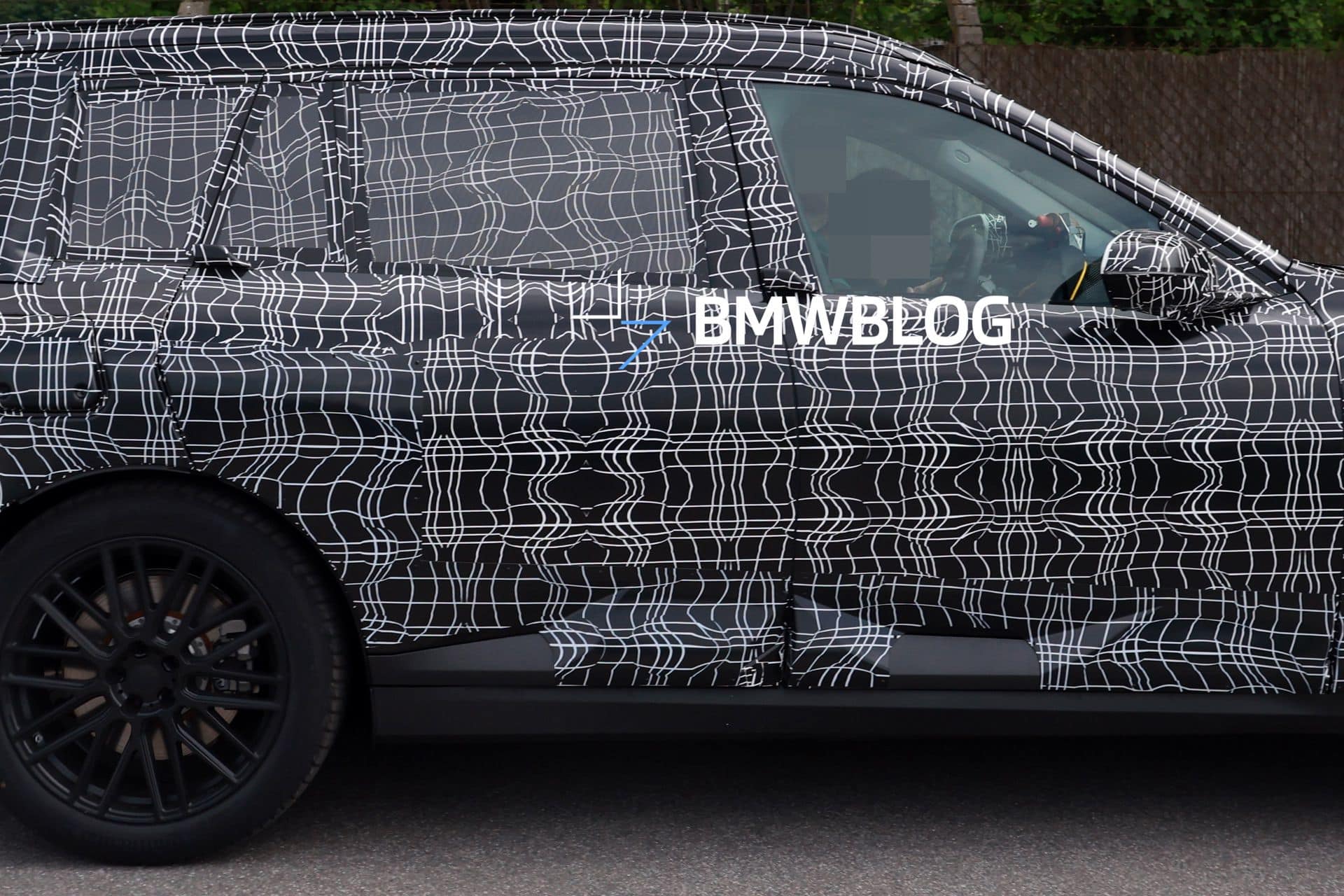 We had hoped BMW might take cues from rivals and hide the rear wiper under the roof spoiler, but that’s not the case. The new X7 clearly uses temporary taillights and may be concealing a light bar on the tailgate. Expect some Neue Klasse design influences to make their way onto Bavaria’s flagship SUV.