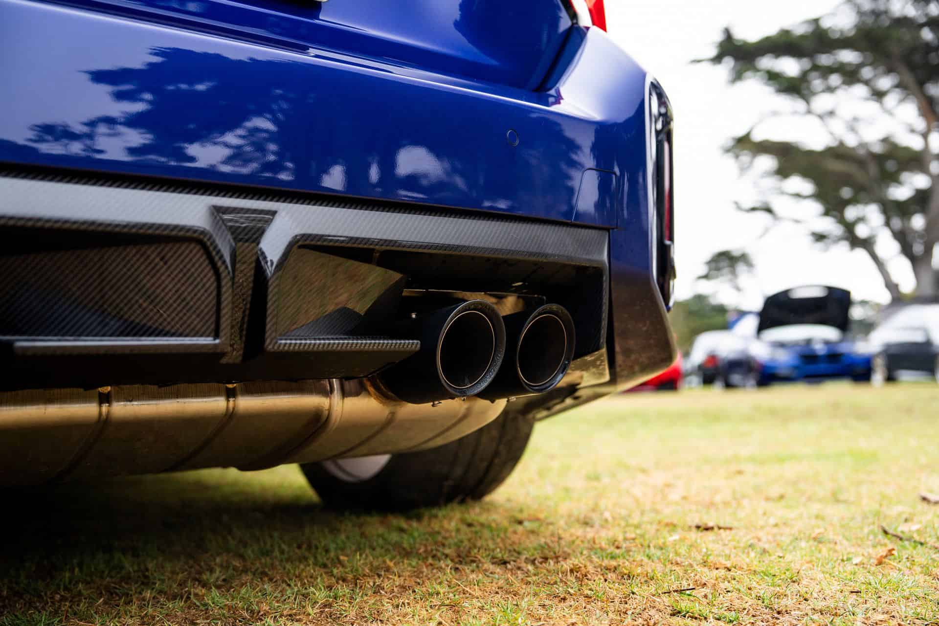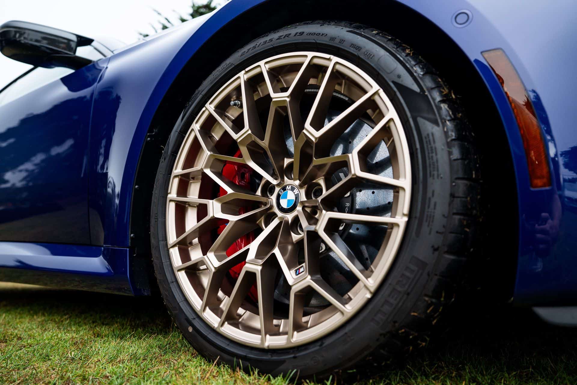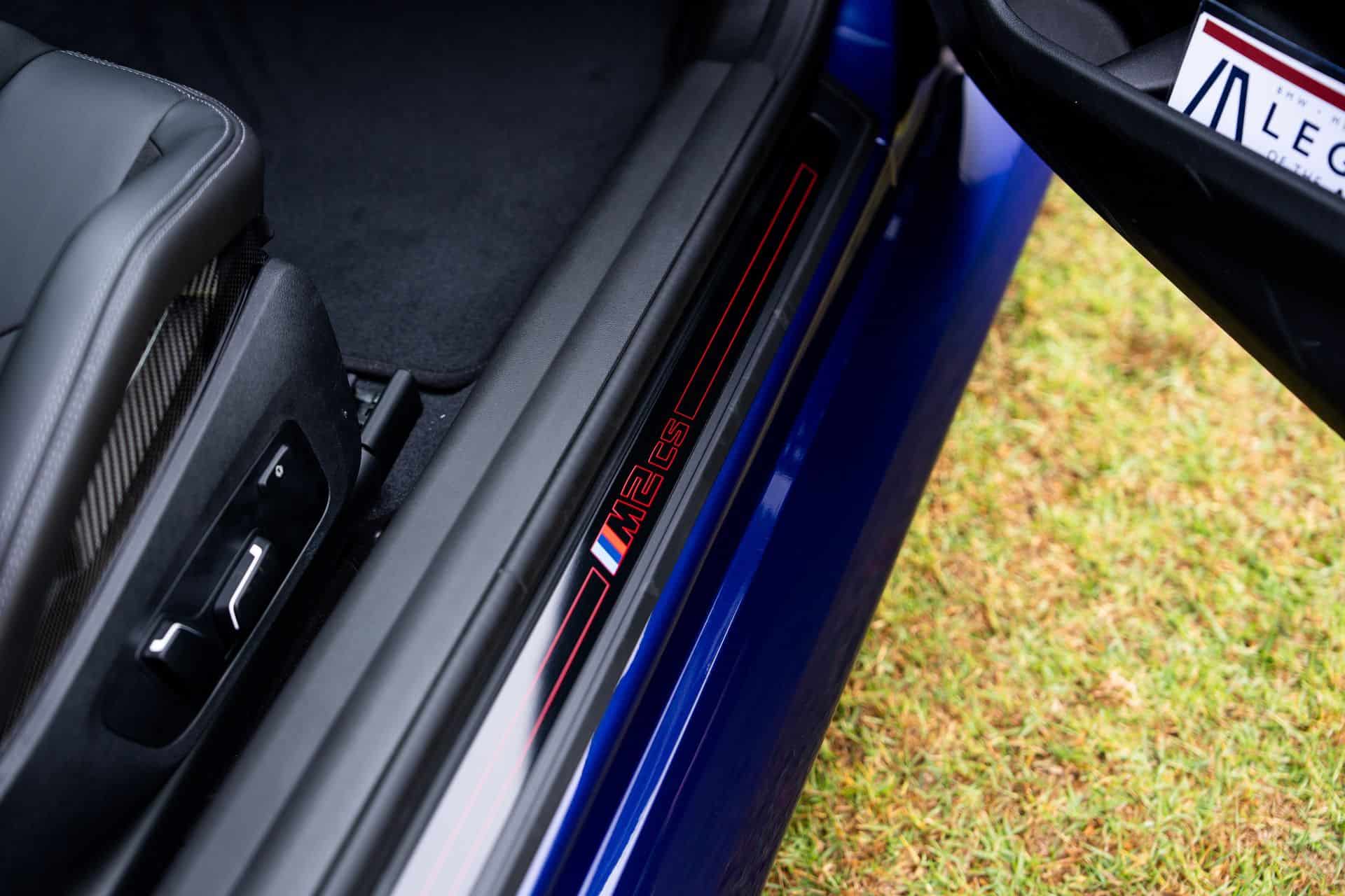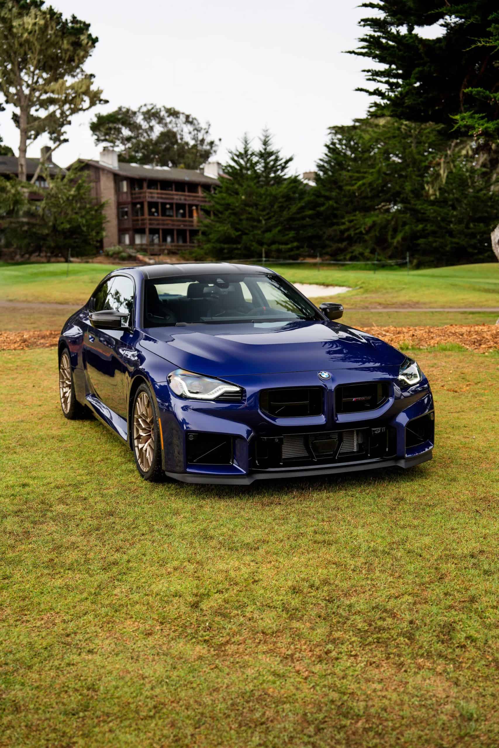 The M2 CS BMW brought out to Pebble Beach this year wears the exclusive launch color shade of Individual Velvet Blue metallic. It’s the only Individual color available on the ultra-exclusive and high-performing M2 variant. Like the one we saw at Concorso d’Eleganza Villa d’Este earlier this year, it wears bronze-painted forged wheels fronting red-painted brake calipers. Measuring 19 inches in the front and 20 inches in the rear, the wheels wear grippy Pirelli tires — 275 profile in front, 285 profile out back.