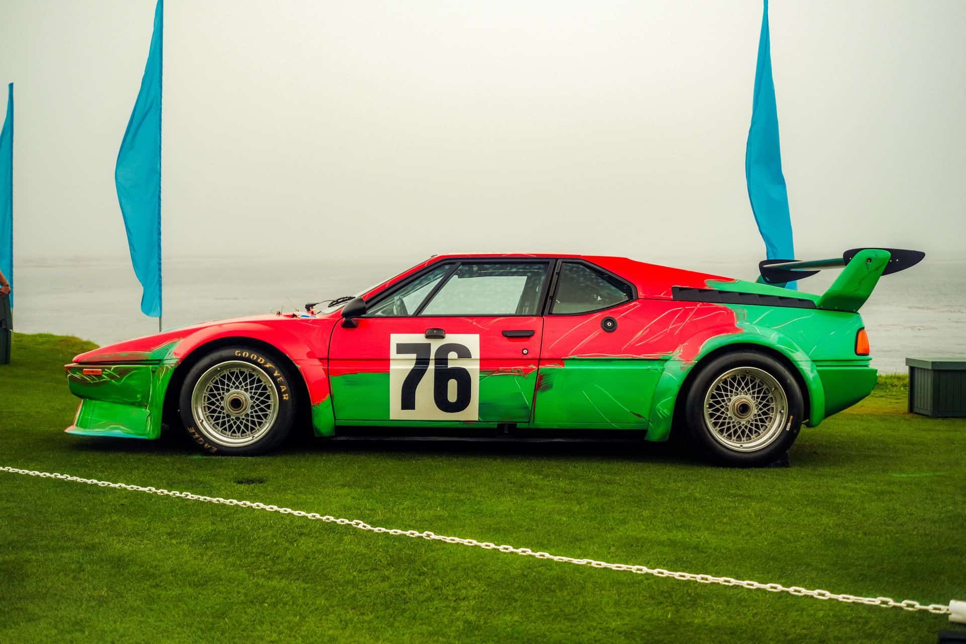 The Andy Warhol Art Car is the fourth ever Art Car and arguably the most famous. Though the Art Car program was still only in its beginning stages, Warhol managed to throw out the rule book entirely. Unlike other artists in the program, who often applied designs on scale models for assistants to later reproduce, Warhol insisted on painting the actual car himself. Warhol reportedly finished the work in just under half an hour, his brushstrokes deliberately raw and spontaneous to emphasize movement even when the car stood still. More than 13 pounds of polymer-based paint, applied via fingerprints, scratches, and other unorthodox techniques, emblazon the car’s bodywork.