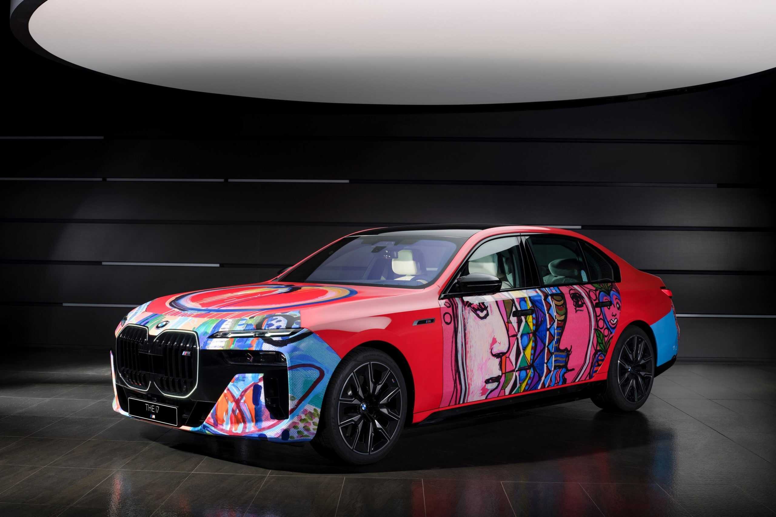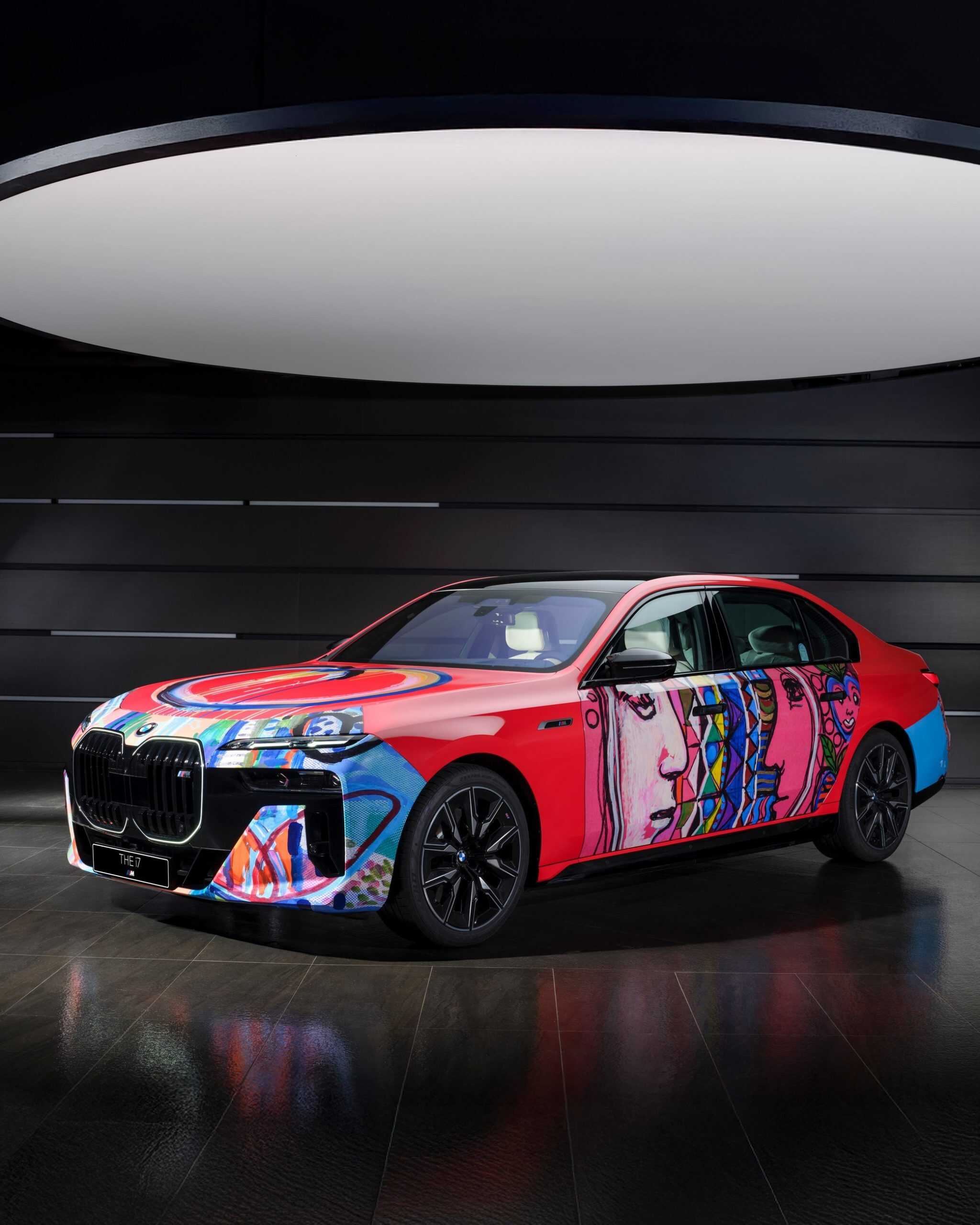 Although not an official art car per se, the M Hybrid V8 remains the latest; this i7 M70 also serves as a canvas on wheels. The 83-year-old artist adapted his “Bodyscape” series, begun in 1976, for the stately EV with the roundel. Describing his latest work, the Sariwon-born artist said: