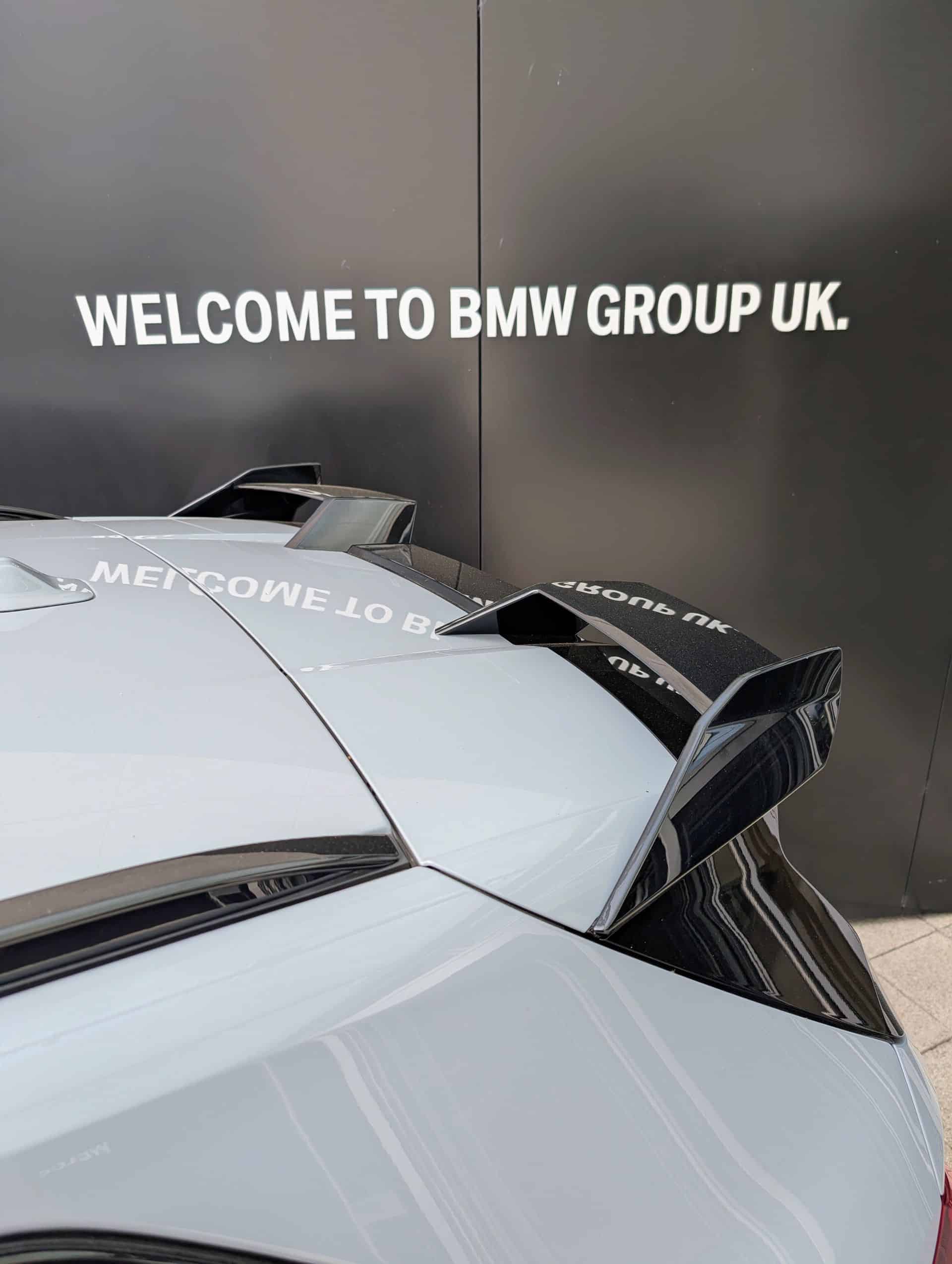 The new wheels may not even be the boldest exterior upgrade. At the back, the roof-edge rear spoiler arguably sticks out more than it should. Finished in high-gloss black with a split layout, it’s not just for show. BMW claims it brings real aerodynamic benefits. We’ll take their word for it. The glossy black treatment continues across the M Performance rear bumper trim and front splitter, tying the look together.