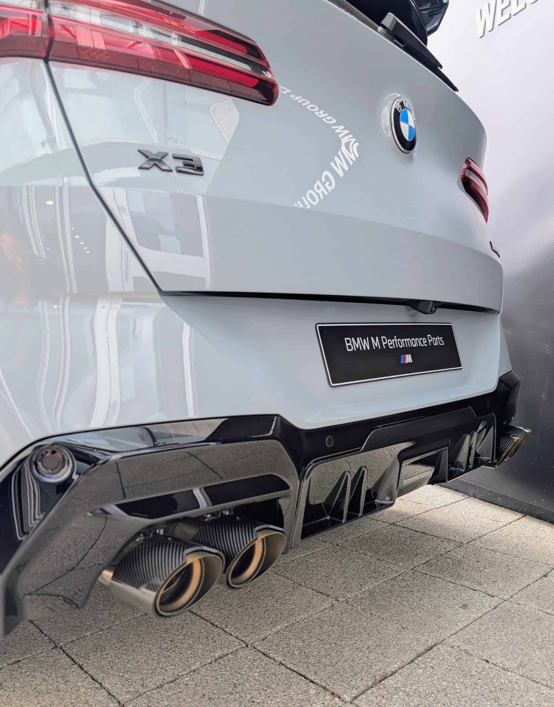We’ll admit an X3 in Brooklyn Grey isn’t necessarily among the most desirable BMWs. However, this is far from a regular “G45.” For starters, it’s the hotter M Performance model, as indicated by its quad exhaust system. The carbon fiber finishers for those four tips are part of a broader array of upgrades not available in the standard configurator, as they come exclusively through the M Performance Parts catalog.