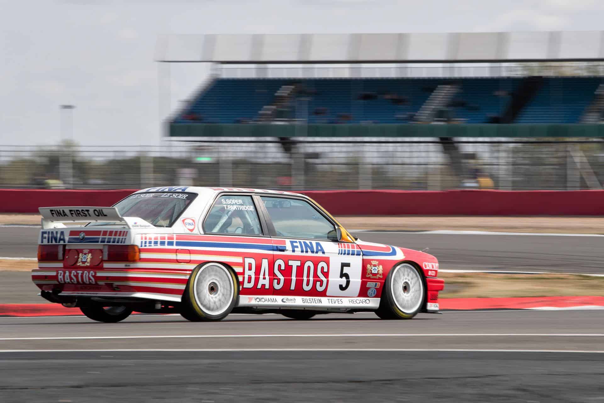Moving up a decade, the BMW E24 635CSi Group A Competition Coupe also took to the track. This big, straight-six powered coupe was a stalwart of the European Touring Car Championship in the early 1980s, winning races thanks to its mix of power and stability. At Silverstone, the 635CSi carried that same Group A spirit, its long hood and low roofline still looking purposeful decades later.