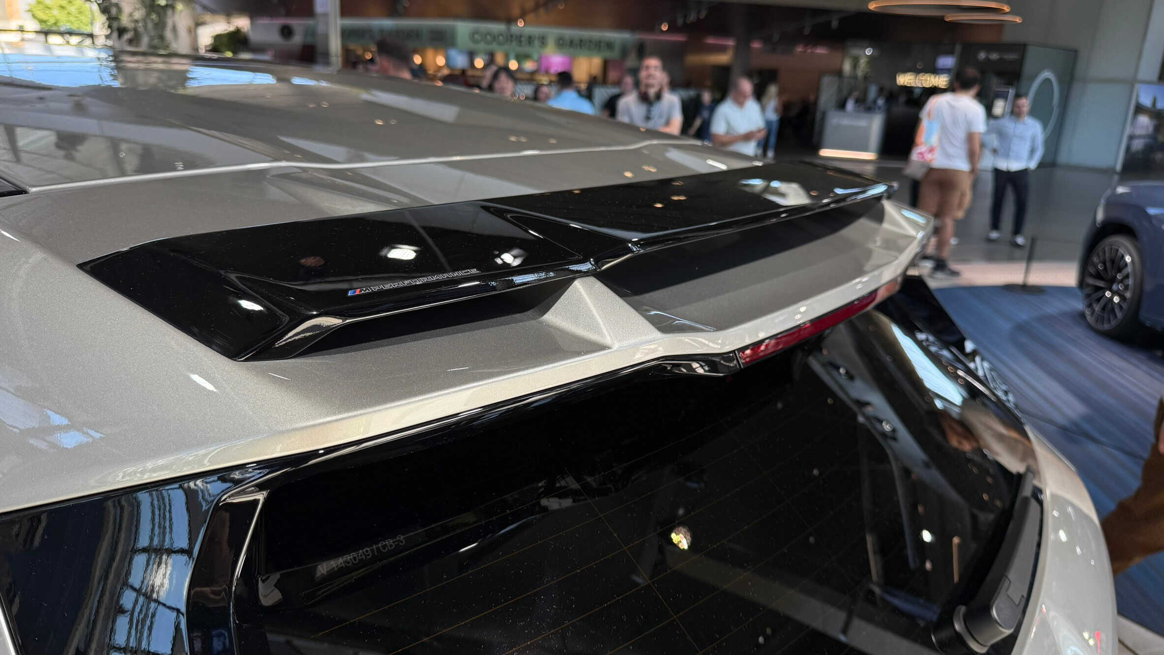 At the back, the diffuser is slightly more pronounced. However, it’s hard to spot the changes against all the glossy black. BMW may be promising a “new era” with the Neue Klasse, ditching chrome for LEDs, but it’s clearly not ready to give up shiny plastic. Case in point: the add-on roof spoiler, finished in gloss black and wearing M Performance branding to ensure bystanders know this isn’t a standard iX3. Completing the look is a matte black decal running along the profile, topped with an M Performance logo to drive the point home.