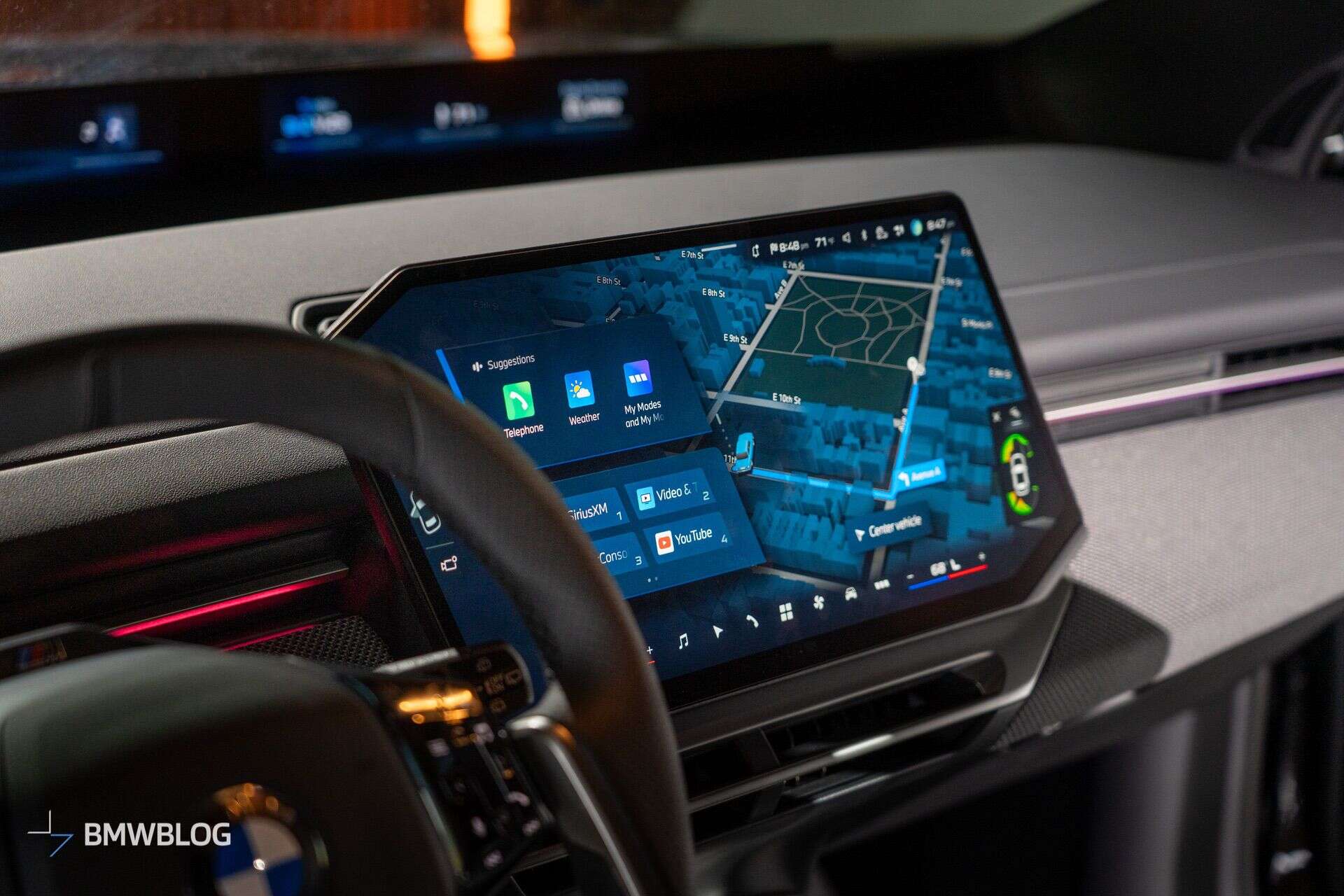Most of the iX3s we’ve seen so far had the Digital White interior, but BMW USA chose a darker cabin to complement the exterior. It also skipped the unconventional steering wheel in favor of the new M wheel with the “M” badge atop the airbag cover. This design, available only in black, isn’t exactly traditional either, but dare we say it’s more conventional than the alternative. It replaces the vertical spokes at 12 and 6 o’clock with ones at 4 and 8.