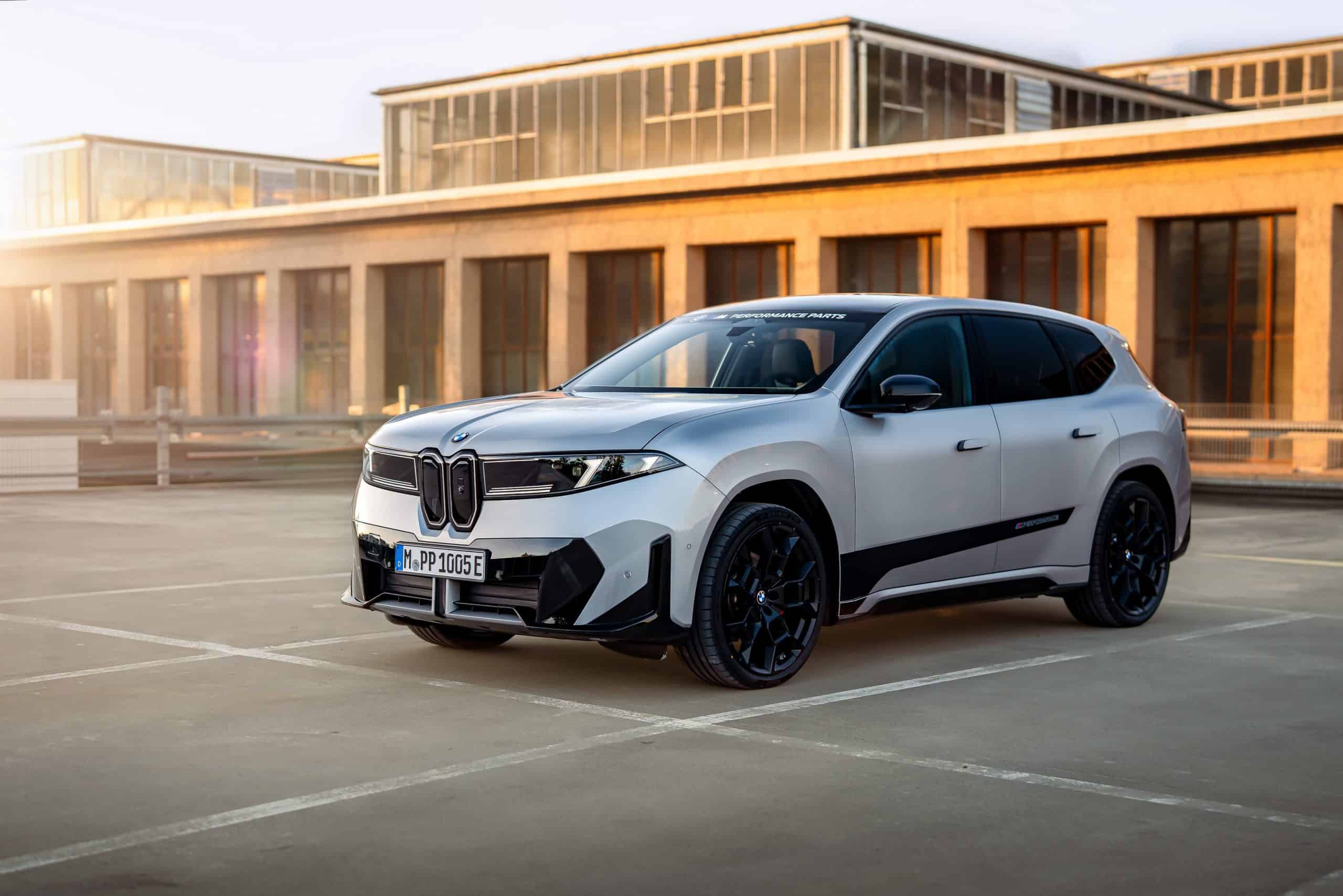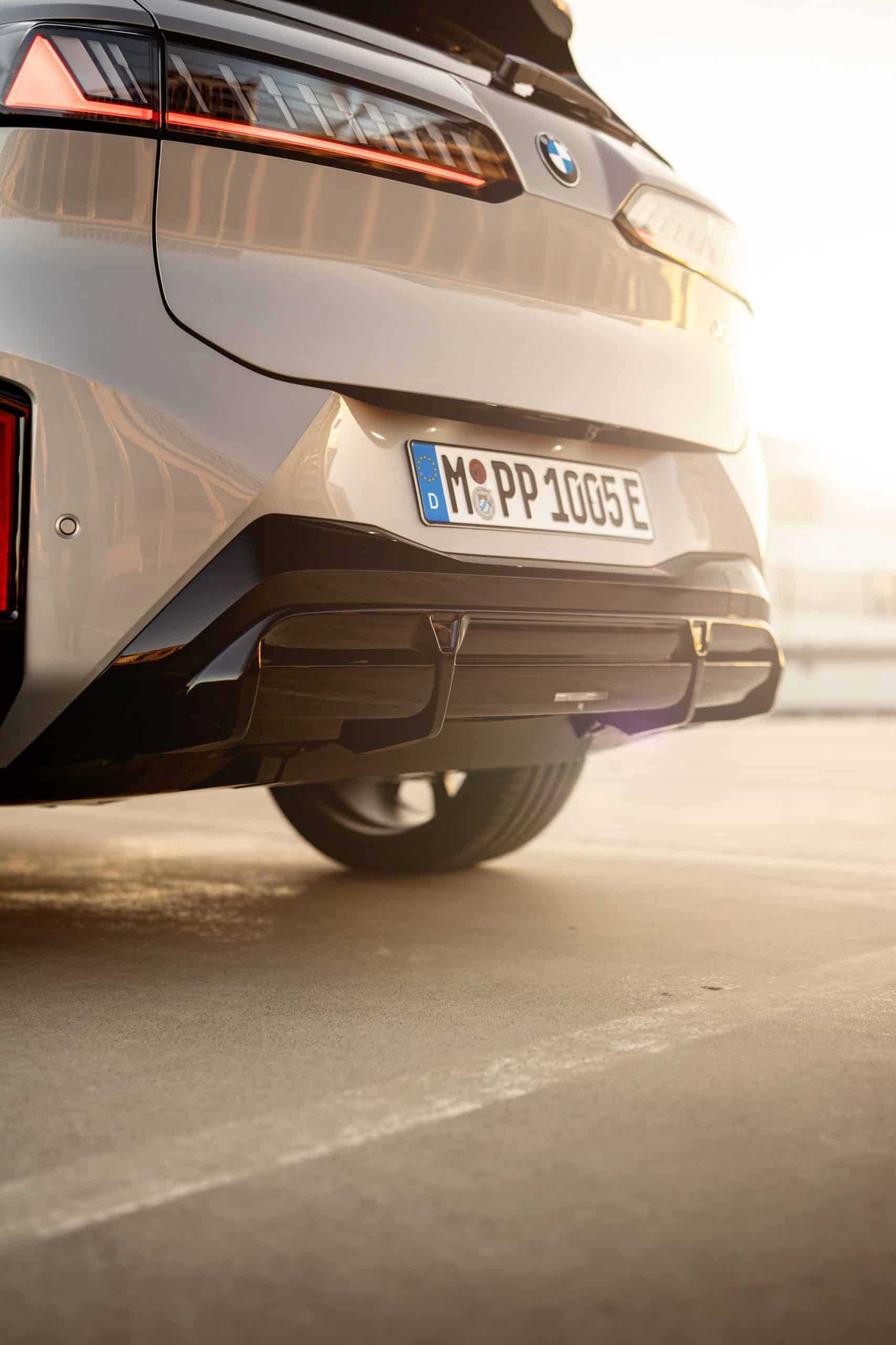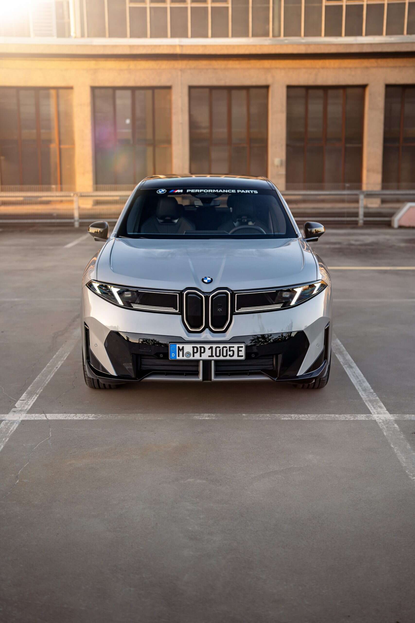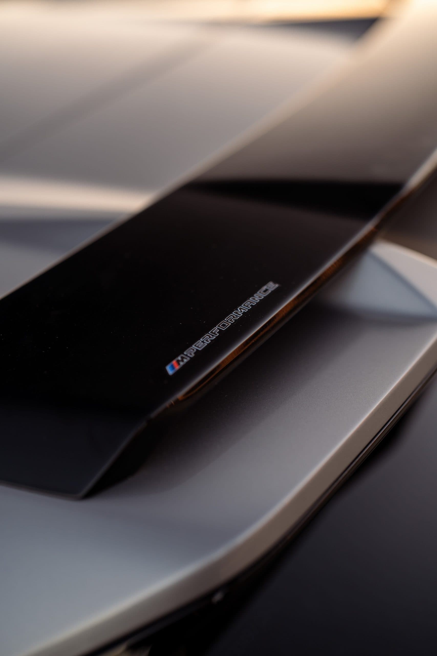 Before more elaborate exterior finishes join the color palette in mid-2026, the iX3 is shown here in a standard shade but dressed with M accessories. Space Silver isn’t especially striking, though the extra rear wing adds some flair. The aero piece mounted above the factory roof spoiler carries M Performance branding and comes in gloss black to match other add-ons, such as the subtly revised diffuser and new front attachments integrated into the lower air intakes.