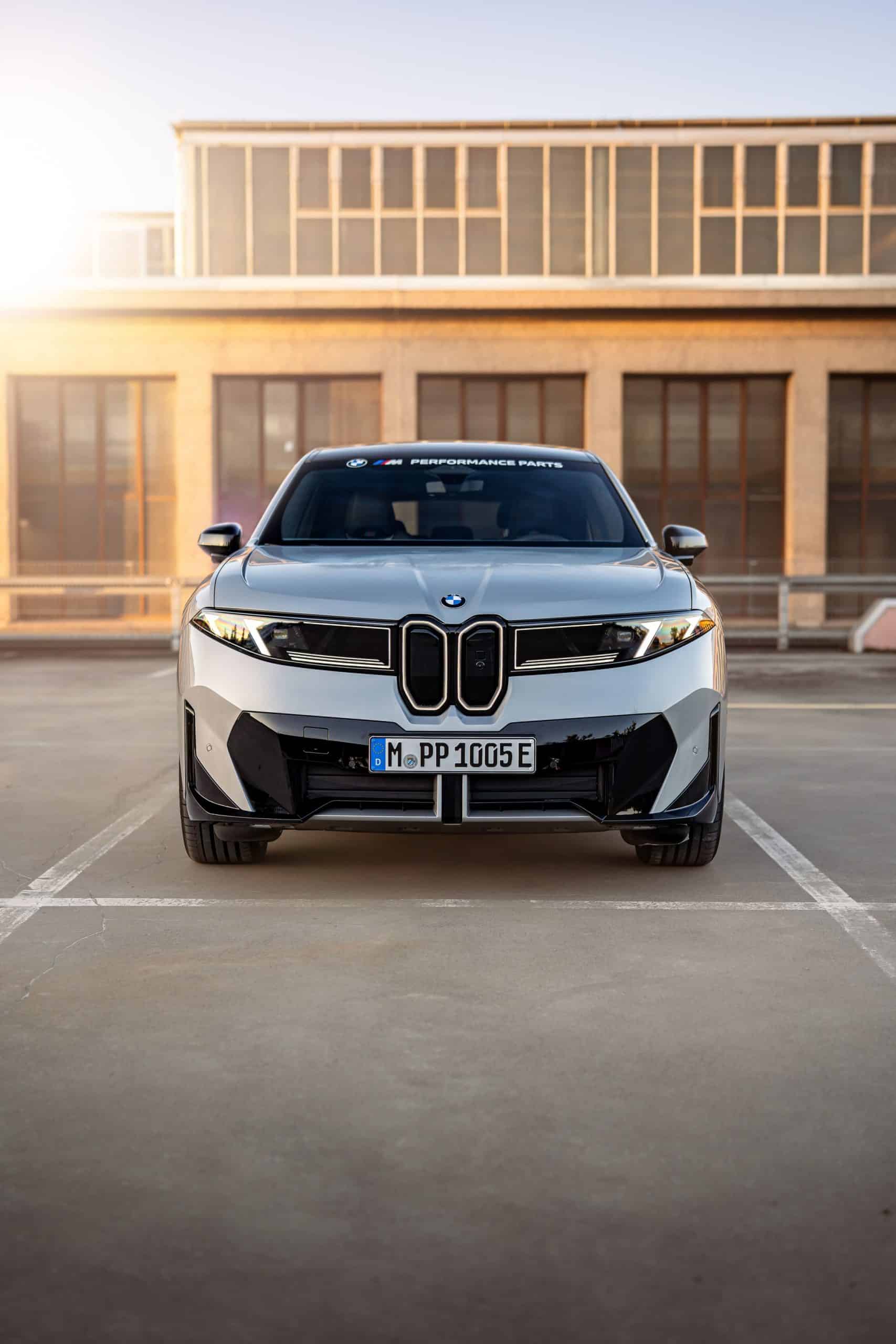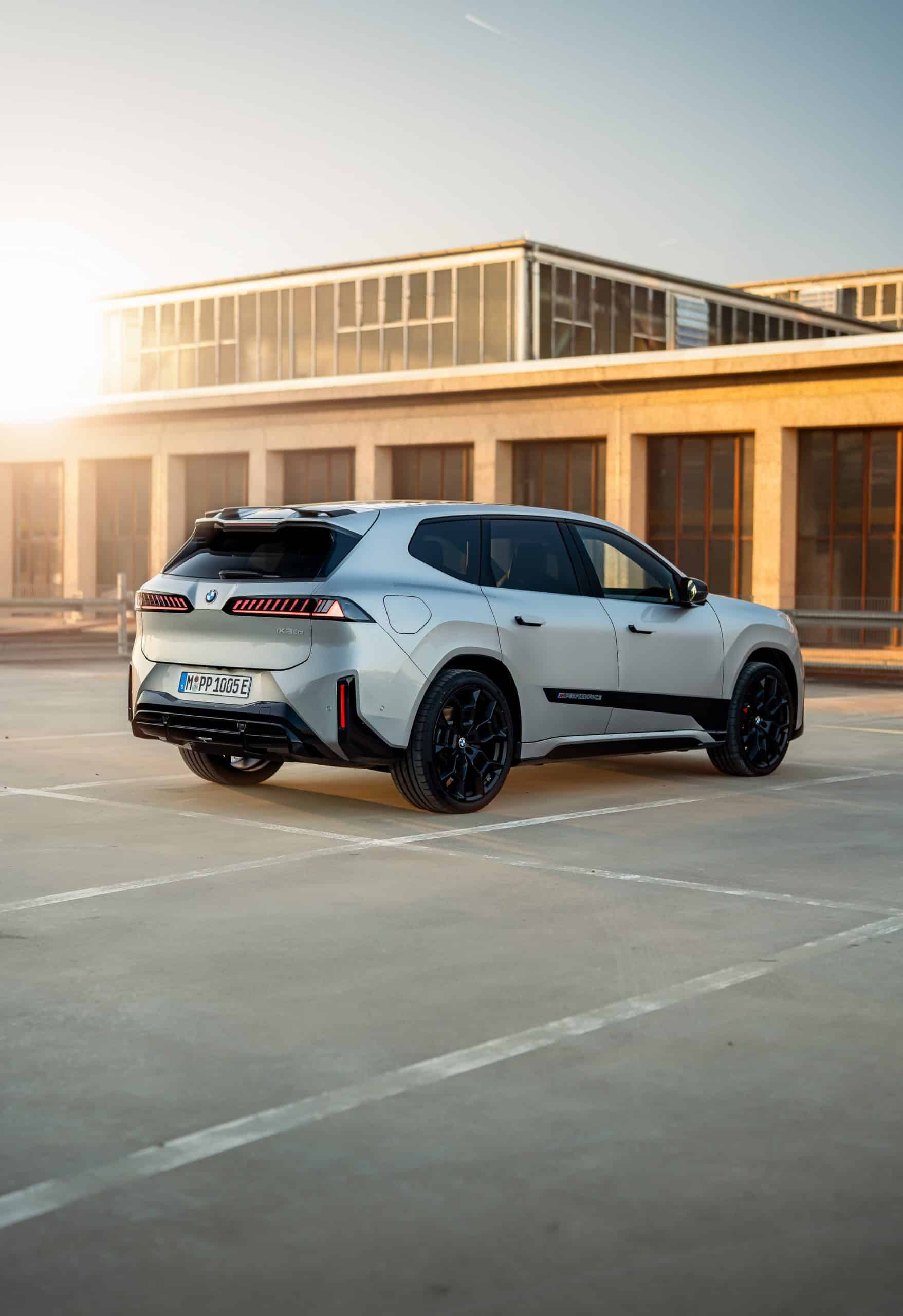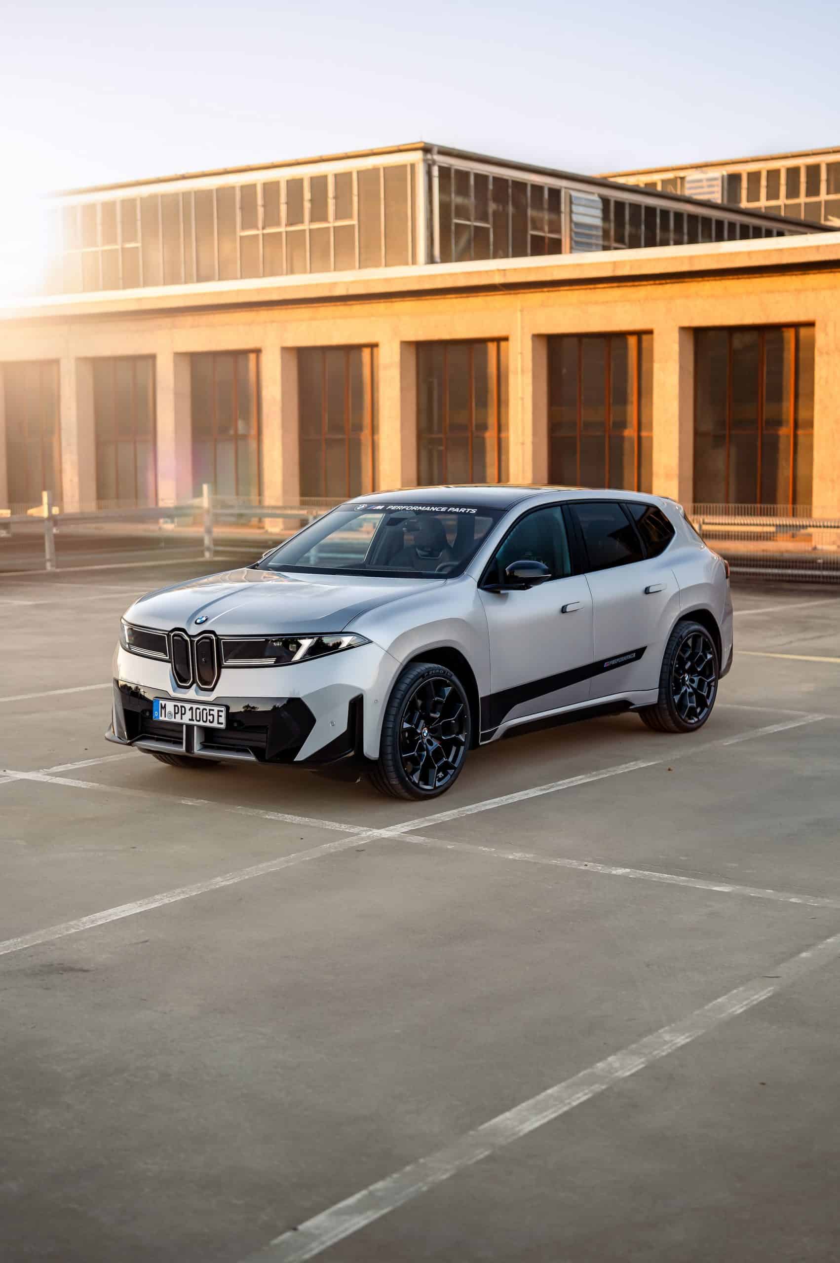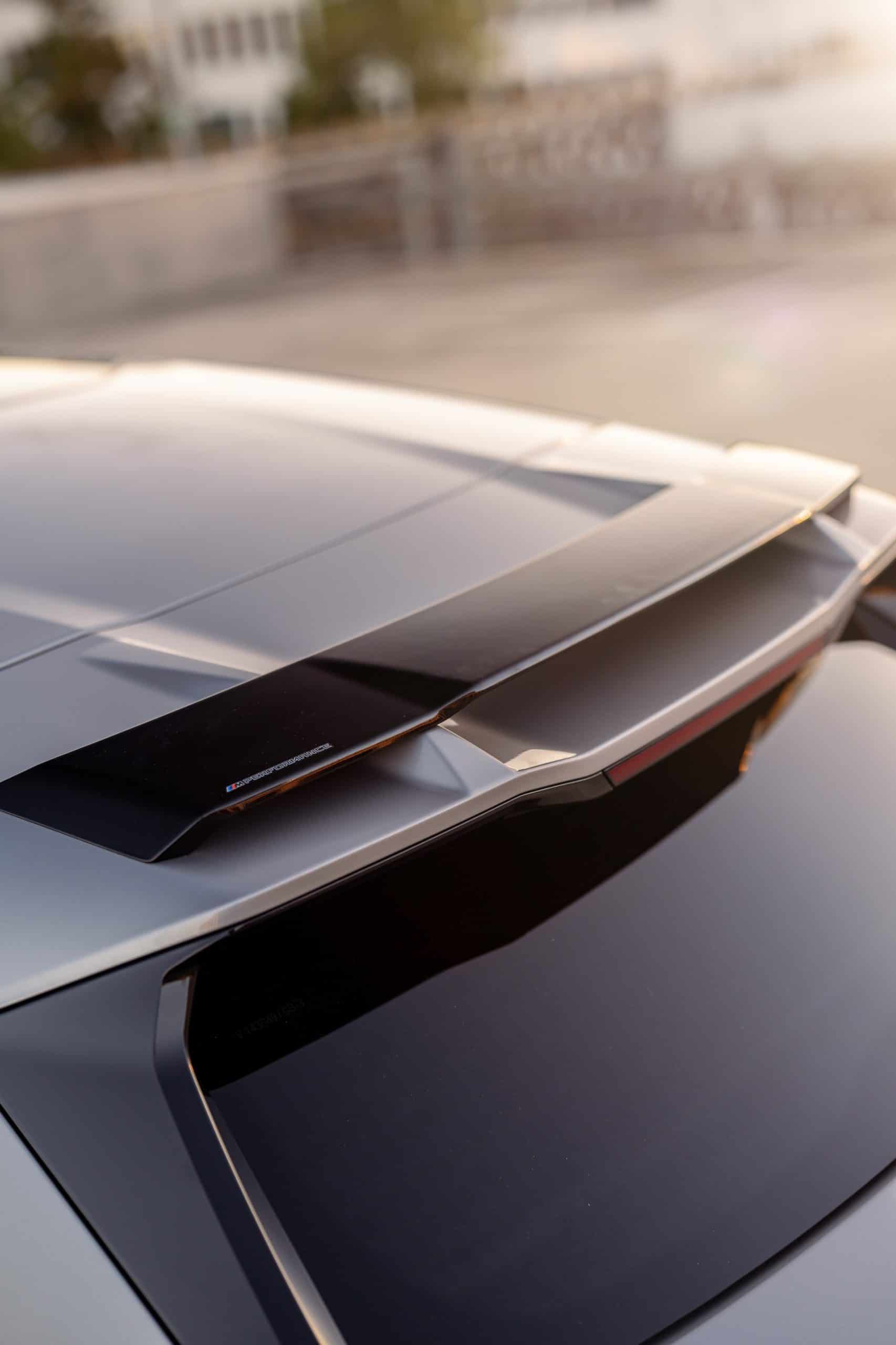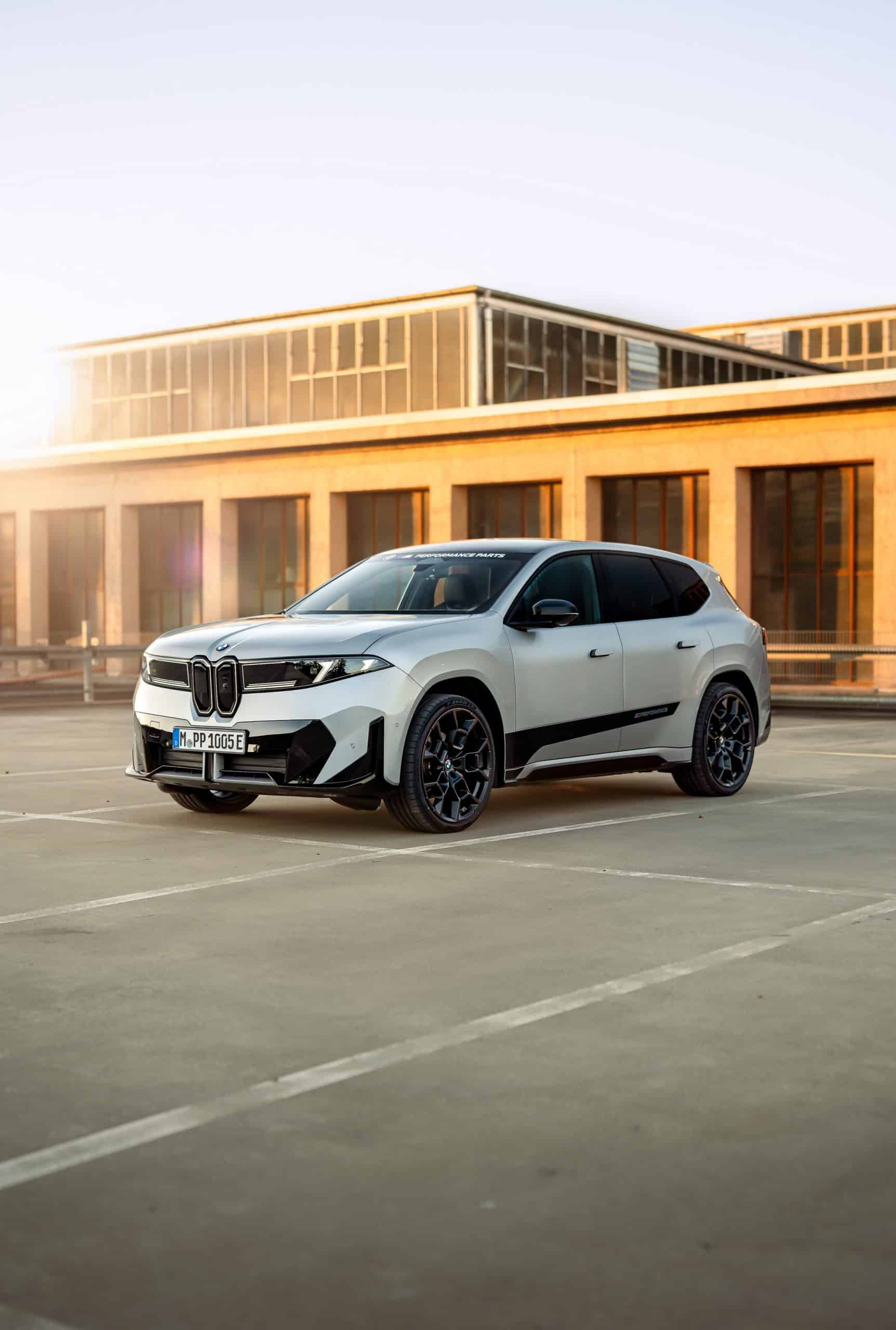 Before more elaborate exterior finishes join the color palette in mid-2026, the iX3 is shown here in a standard shade but dressed with M accessories. Space Silver isn’t especially striking, though the extra rear wing adds some flair. The aero piece mounted above the factory roof spoiler carries M Performance branding and comes in gloss black to match other add-ons, such as the subtly revised diffuser and new front attachments integrated into the lower air intakes.