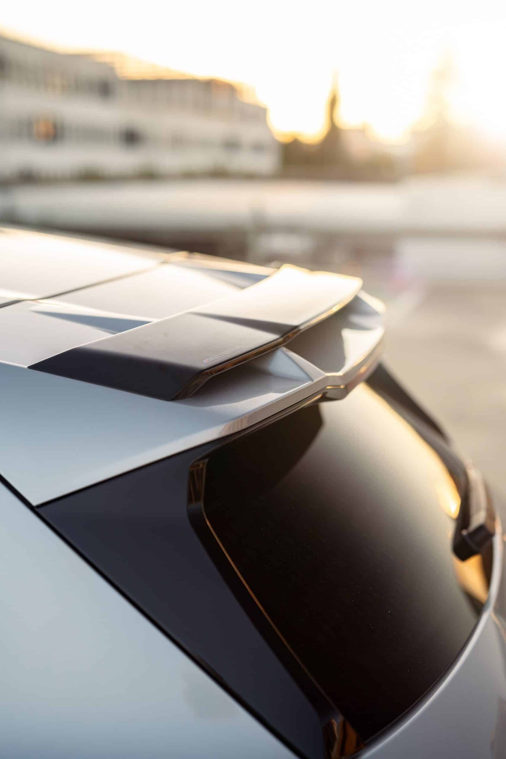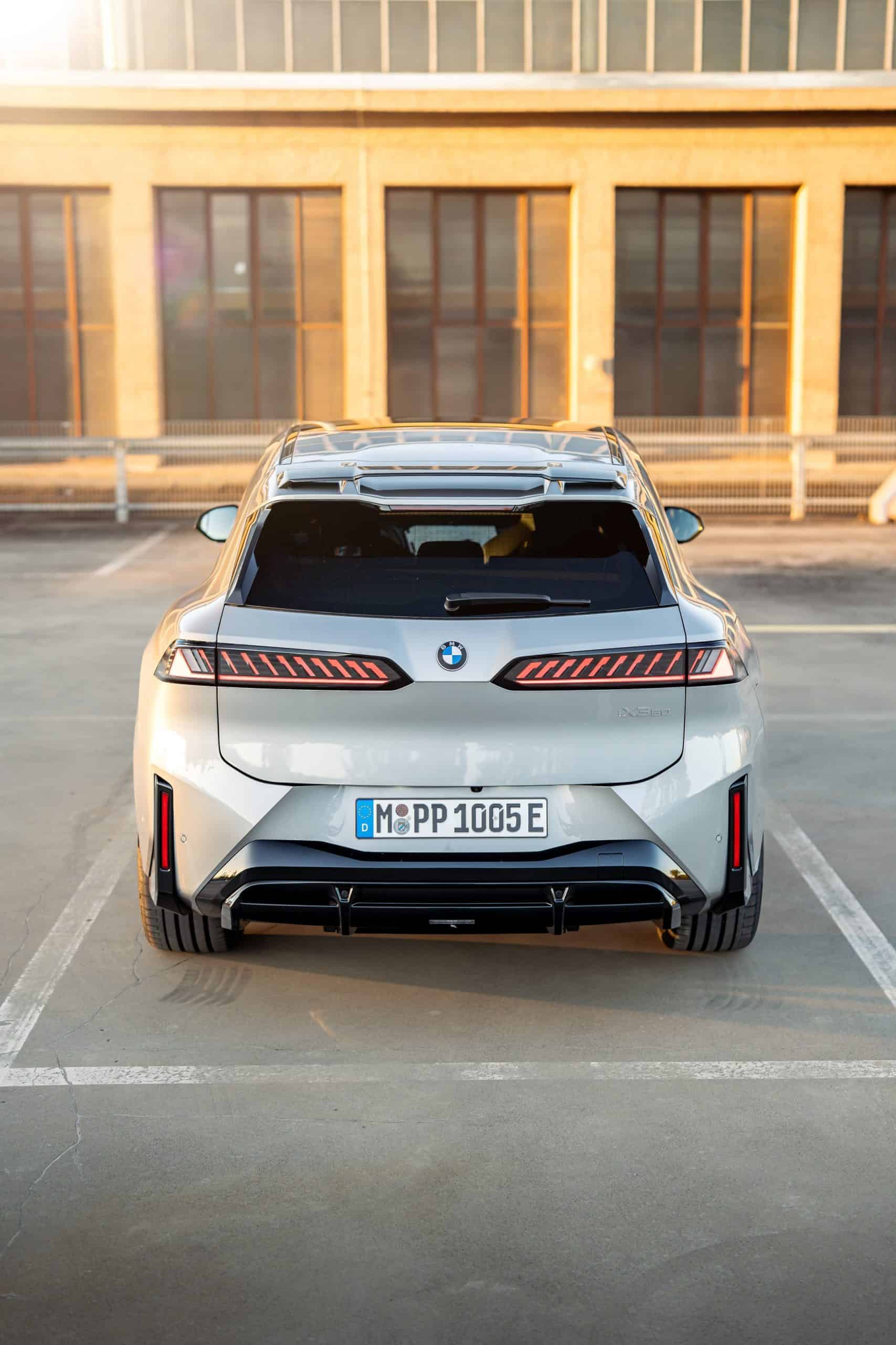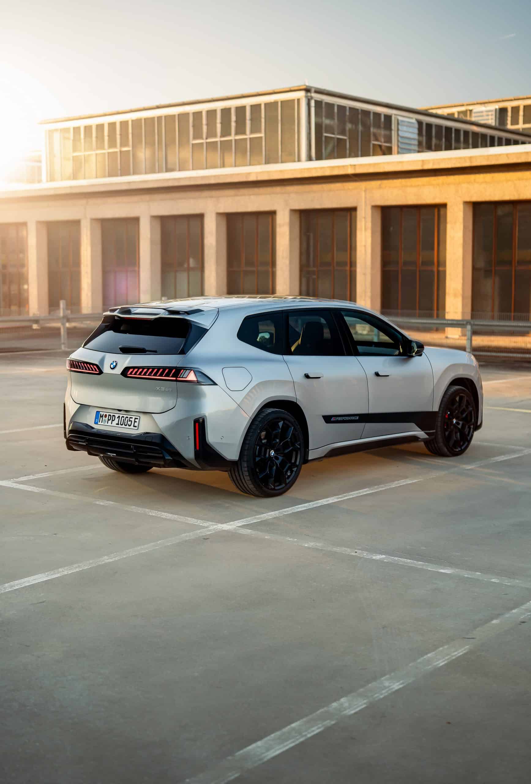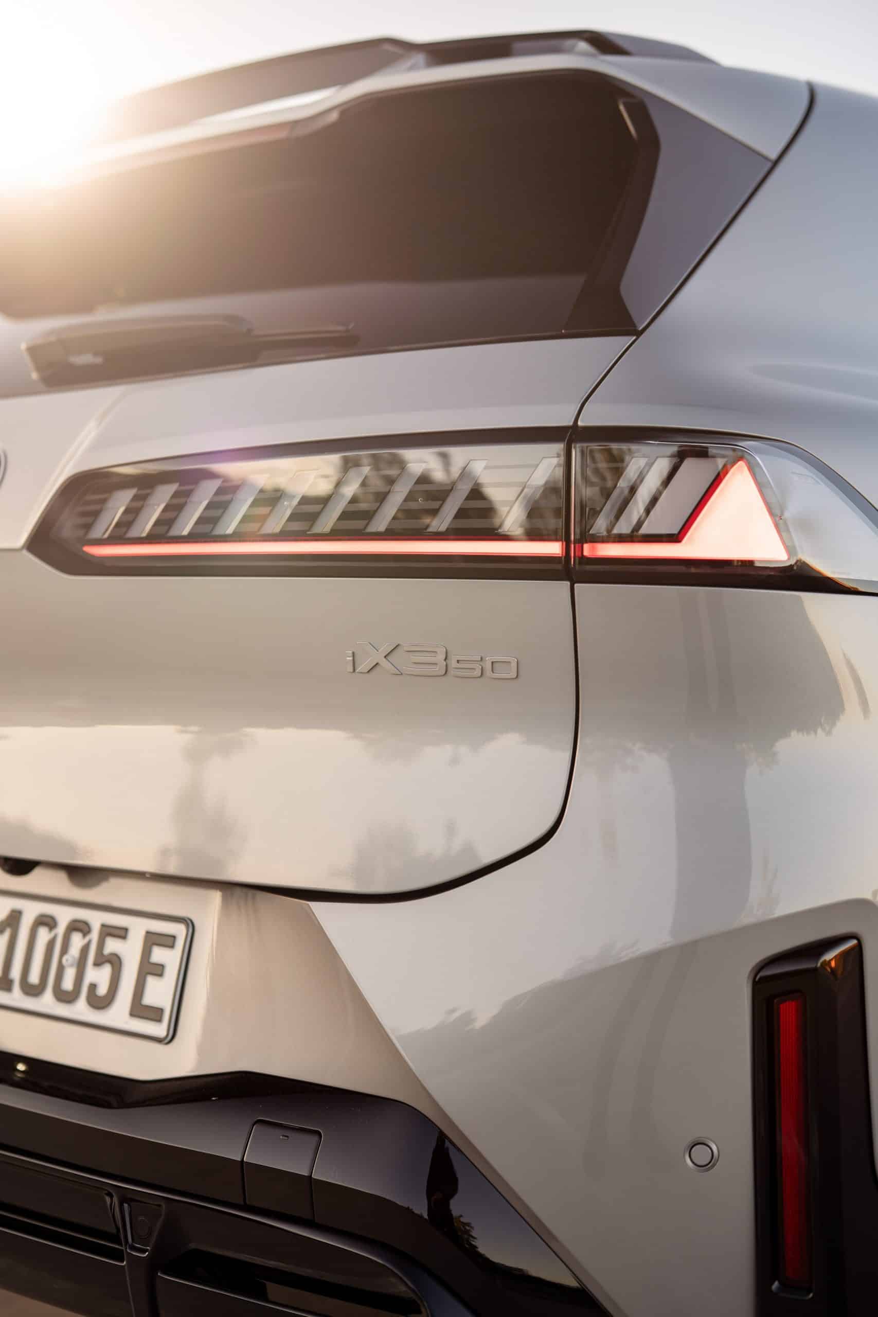 Before more elaborate exterior finishes join the color palette in mid-2026, the iX3 is shown here in a standard shade but dressed with M accessories. Space Silver isn’t especially striking, though the extra rear wing adds some flair. The aero piece mounted above the factory roof spoiler carries M Performance branding and comes in gloss black to match other add-ons, such as the subtly revised diffuser and new front attachments integrated into the lower air intakes.