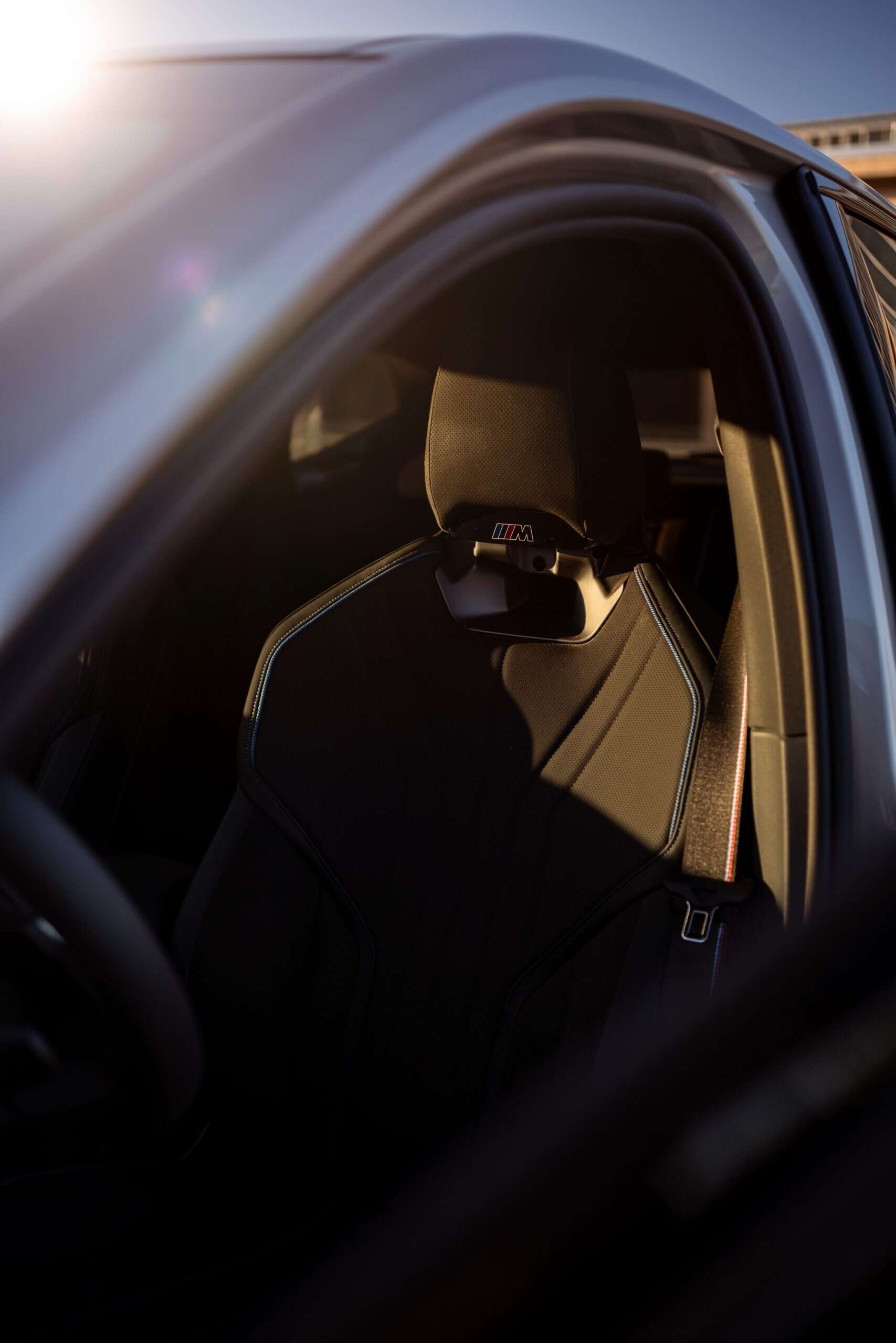 The M touches continue inside with the optional M Sport seats, priced at €1,500 in Germany. They offer 10-way electric adjustment, a seven-stage massage function, adjustable thigh support, and an illuminated M logo. While not full bucket seats, they provide stronger lateral support than the standard chairs thanks to more substantial bolstering. The seats also integrate the Travel Comfort System, allowing mobile devices and accessories to be mounted to the backrests.