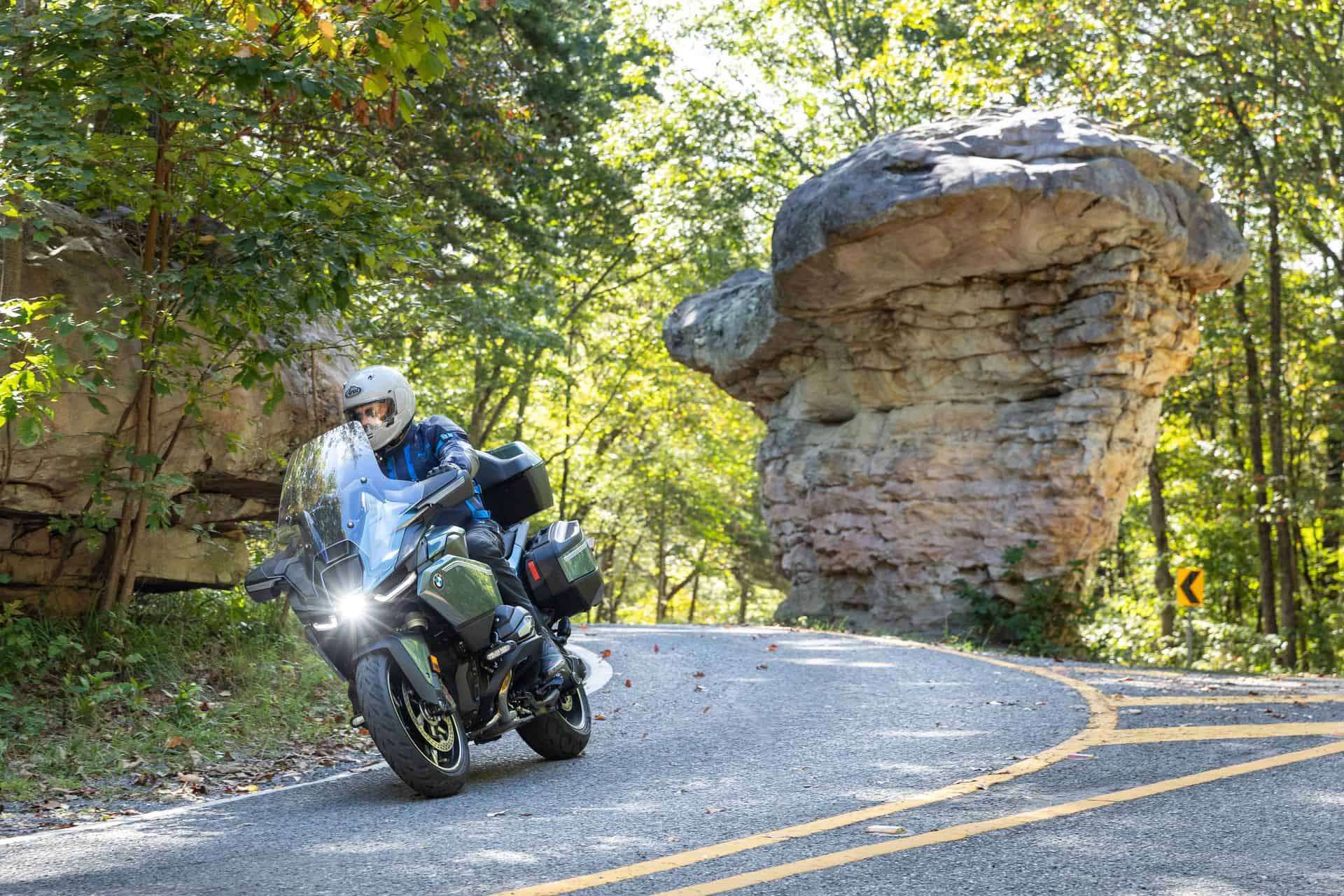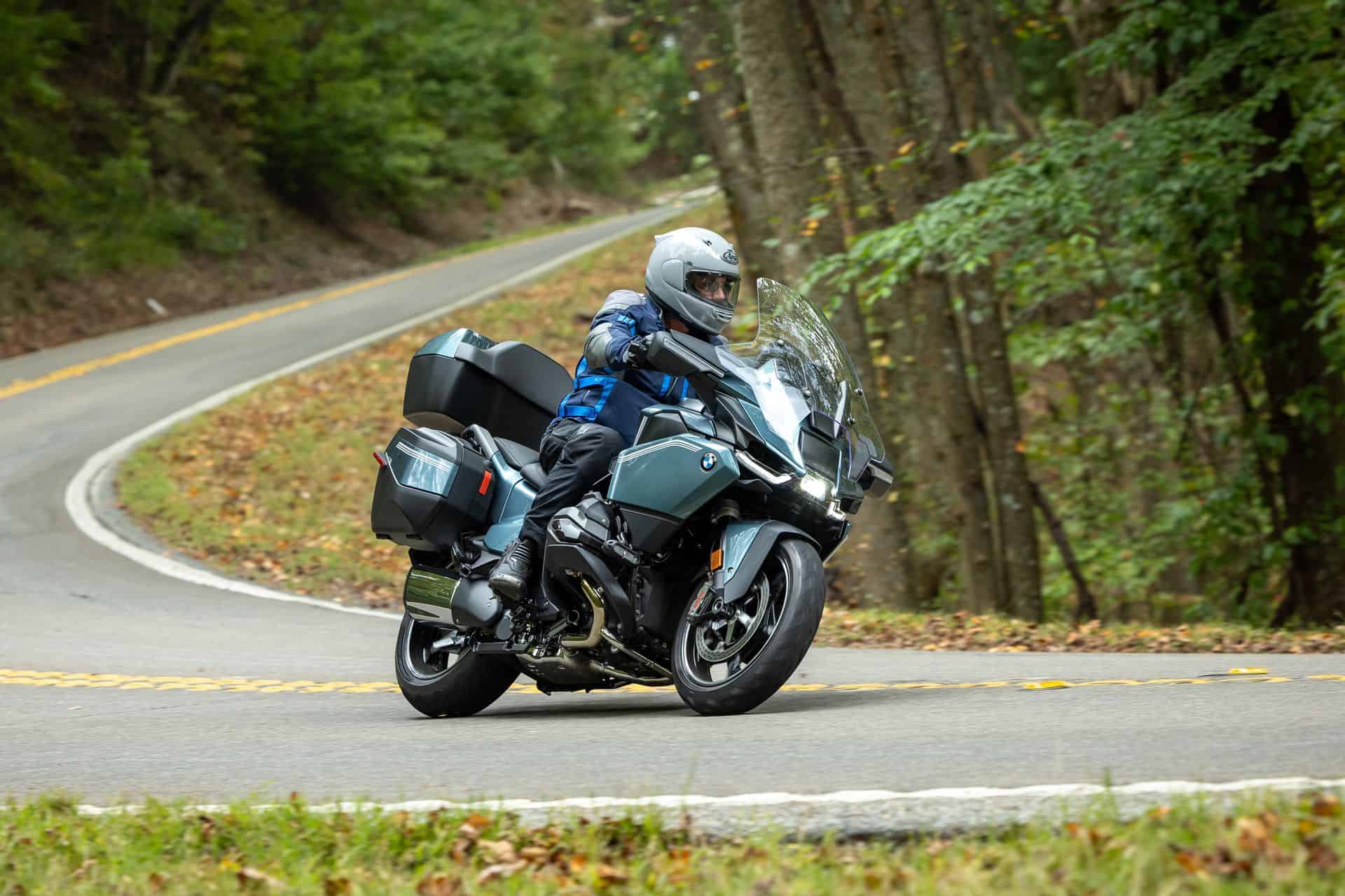 The RT is festooned with all manner of technology fit for a modern touring bike and doesn’t diverge significantly from the Motorrad’s other top-shelf machines. The 10.25-inch TFT color display is bright and legible in all conditions, and includes smartphone-mirrored navigation via the BMW Motorrad Connected App. The Riding Assistant suite adds comprehensive safety features, such as Active Cruise Control (ACC), Frontal Collision Warning (FCW), and Lane Change Warning—using radar and automated braking interventions to reduce the risk of accidents. Full LED lighting is standard, while the optional Headlight Pro adapts beam direction and intensity based on riding and load conditions. Audio options include an integrated system with HD radio, FM/AM bands, and an optional Audio Pro system for enhanced sound clarity at all speeds. I can report that the stereo works, in that I turned it on, heard sound coming from the twin speakers, then turned it off in favor of the cacophony of motorcycle sounds passing by (apologies to our audiophile readers for that pitiful review.)
