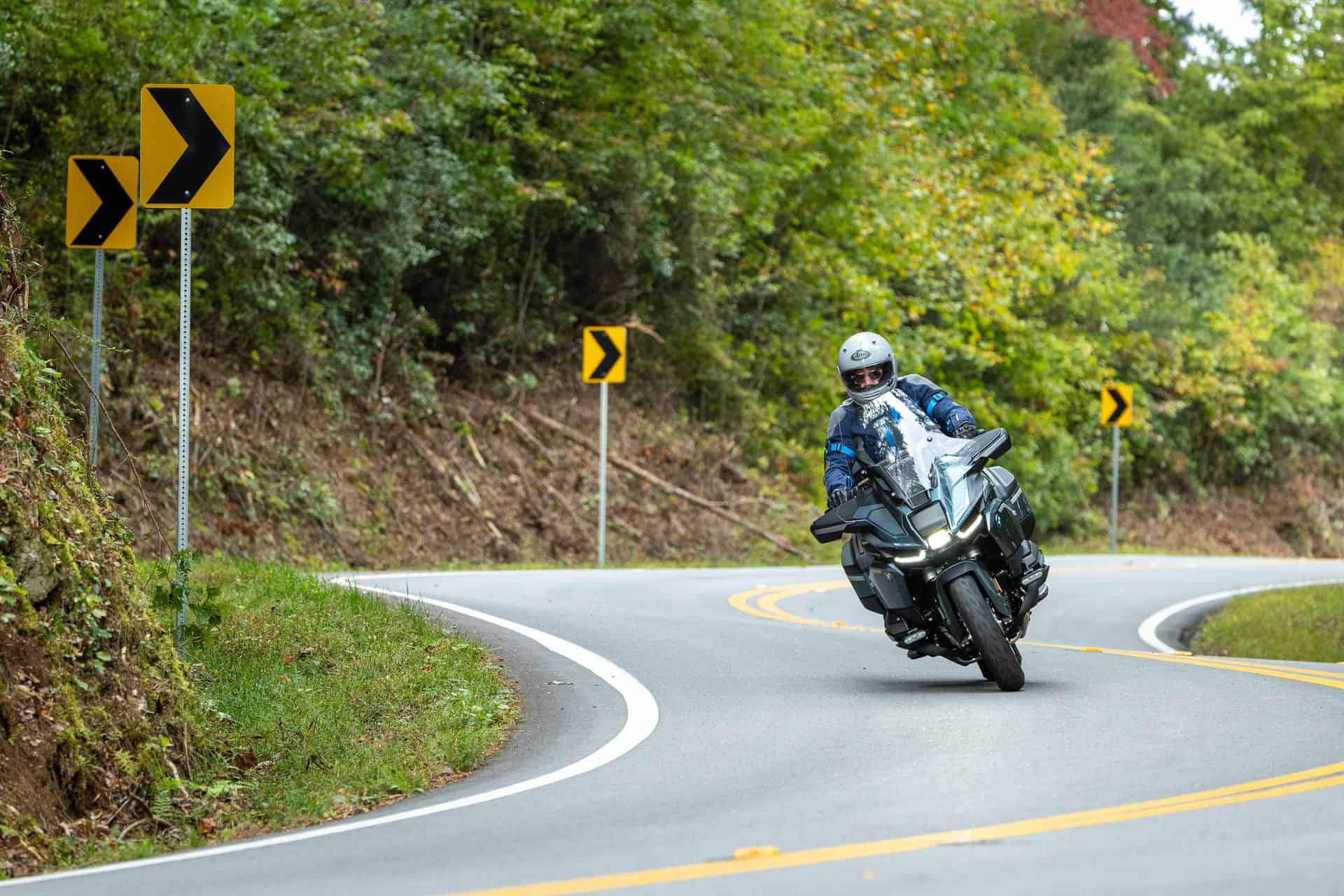 Riding our curvy, snaking route provided every manner of tarmac and terrain to test out the new RT’s handling, from fast sweepers to mid-speed cambered curves to 15-mph switchbacks where speed-limit signs weren’t kidding. (We even had an actual snake make an appearance in the middle of the hot road as we went zooming by.)