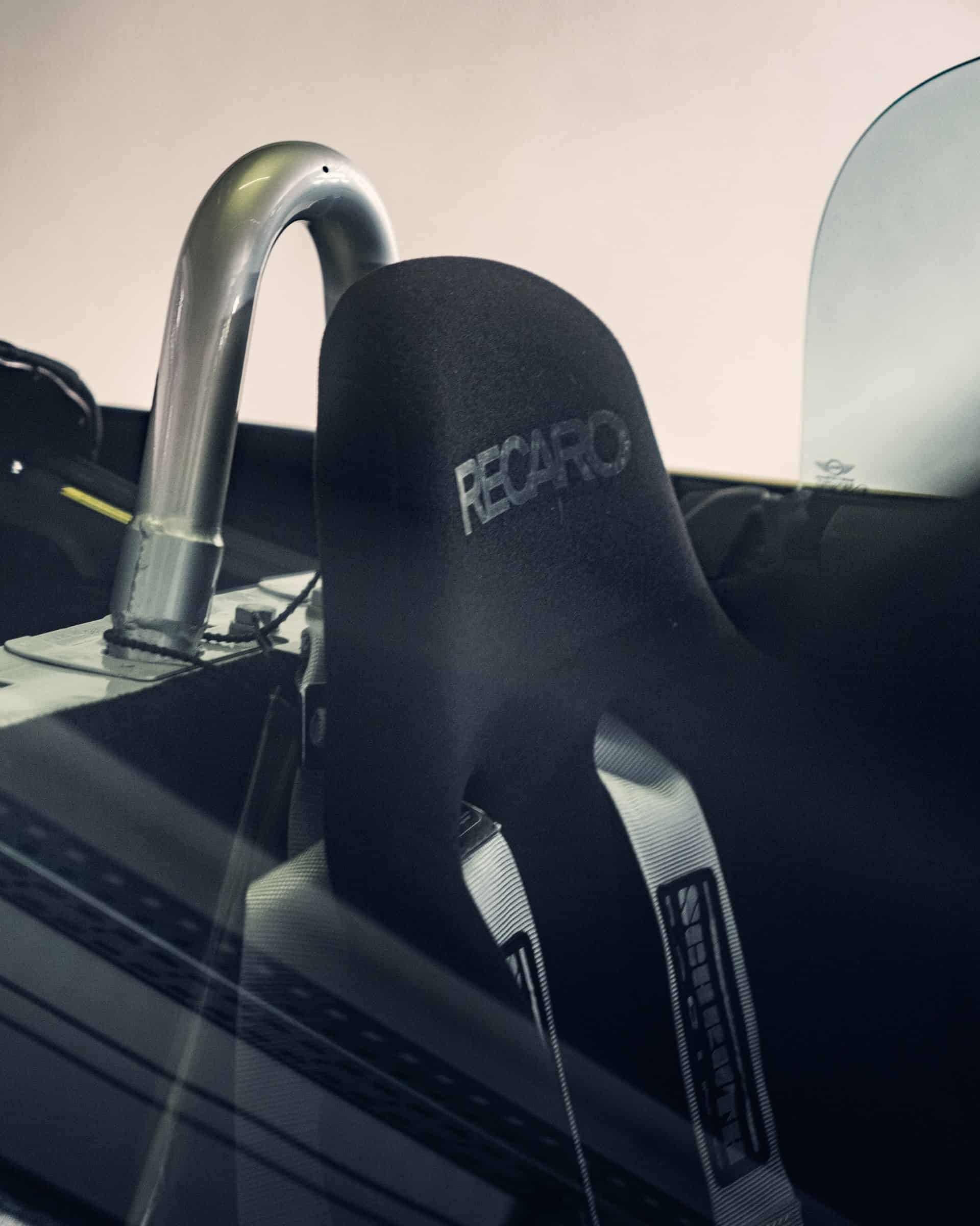 Maybe most importantly, this car appears to have a nearly full interior. The interior has a steering wheel we’ve seen in other MINI products, fronting what appears to be a production speedometer. While Recaro race seats and a harness system replace conventional seats and a seatbelt, it appears that the cabin is pretty well put together. We don’t have a full shot of the cabin, unfortunately. In the sole interior shot provided, we do see a full center stack full of buttons and switches. Considering the MINI Superleggera Vision had nearly nothing in the cockpit, this is a clear step towards production readiness.