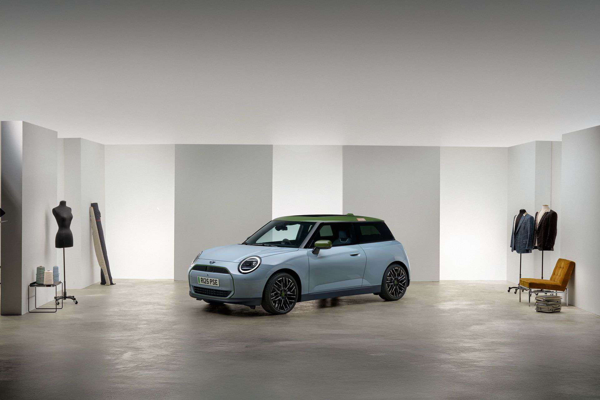 The roof, finished in Nottingham Green to honor Paul Smith’s hometown, is mirrored on the side mirror caps, wheel center caps, and the grille’s outline. Buyers can also opt for a darker roof featuring multiple stripes in varying shades of matte and glossy Jet Black.