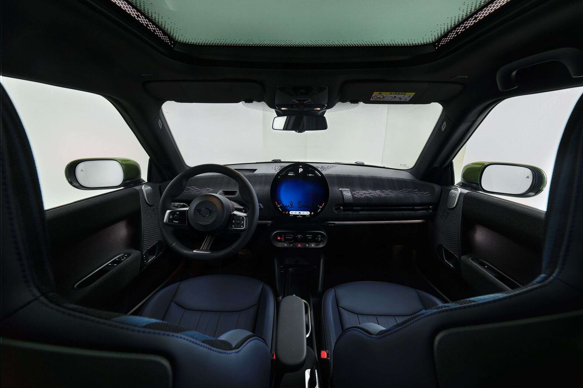 The closer you look, the more details you discover. The designer’s iconic striped motif appears subtly on the driver’s side of the roof. The MINI logos are finished in Black Blue, and Paul Smith’s signature adorns the rear horizontal trim strip.