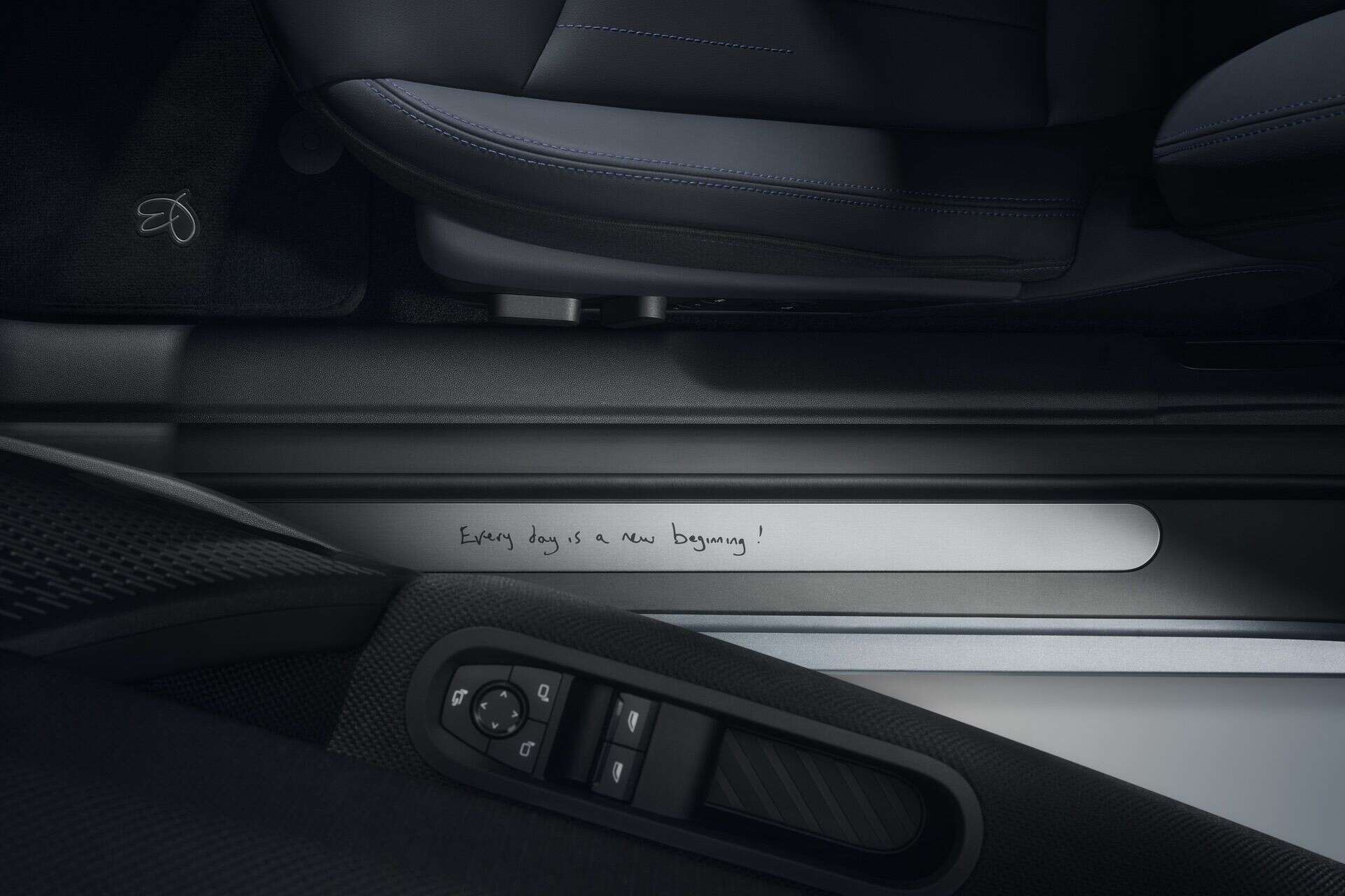 Even the infotainment system receives special treatment with three custom Paul Smith backgrounds. Additional bespoke touches include handwritten “Hello” light projections that appear when you open the doors. The door sills are inscribed with Smith’s motto, “Every day is a new beginning,” and there’s even a hand-drawn rabbit motif on the floor mats.