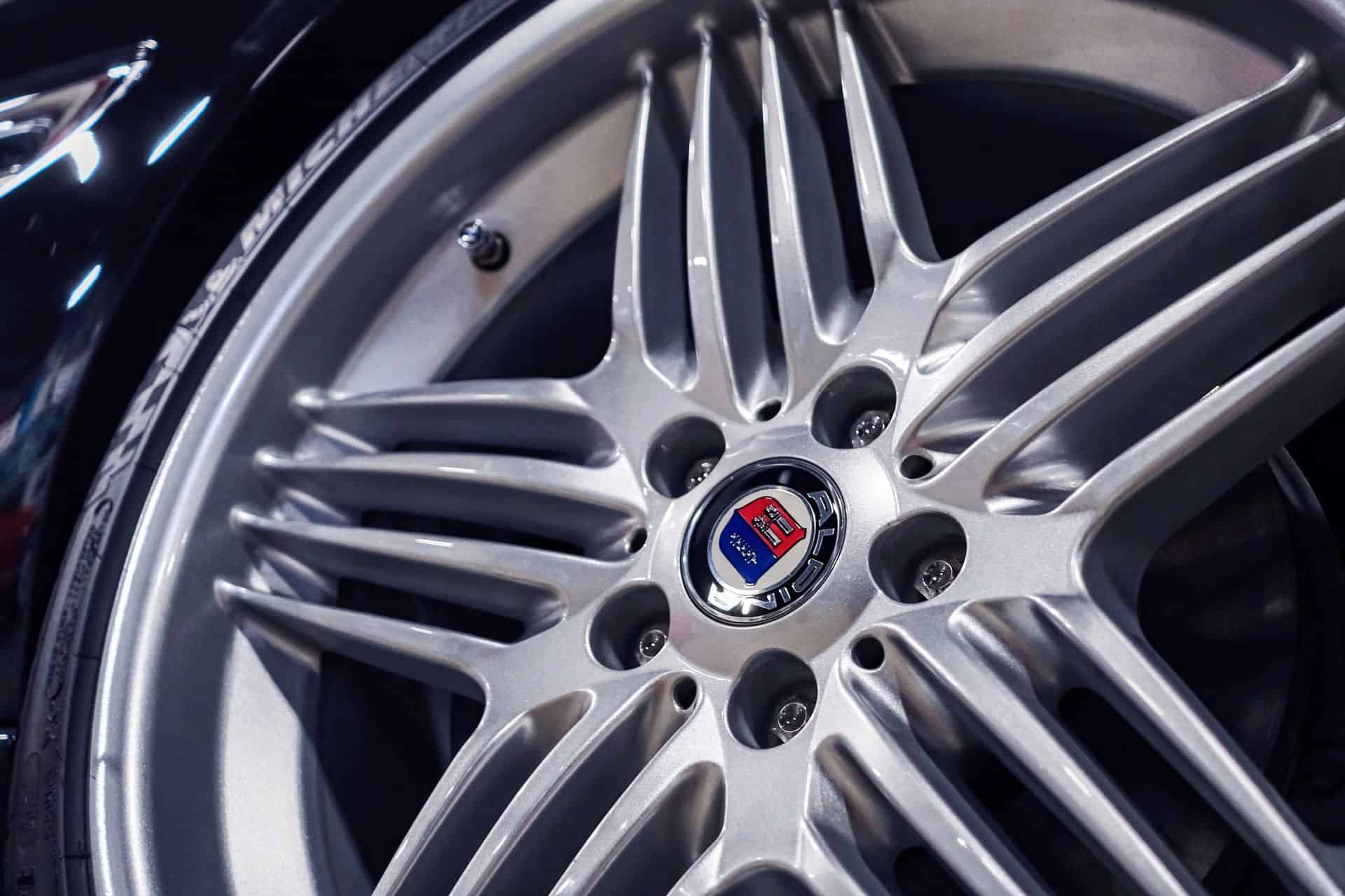 When you think of ALPINA wheels, your mind may immediately summon images of the trademark 20-spoke alloys that have decorated ALPINA models for decades. But remember: there’s a little bit of everything at this exhibit. That includes cars like the ALPINA V8 Roadster, ALPINA’s take on the iconic BMW Z8. Here, you can see the incredibly cool “five-spoke” design that appeared on the Roadster. Despite the design differences, these too have 20 spokes — assembled, though, in a different fashion.