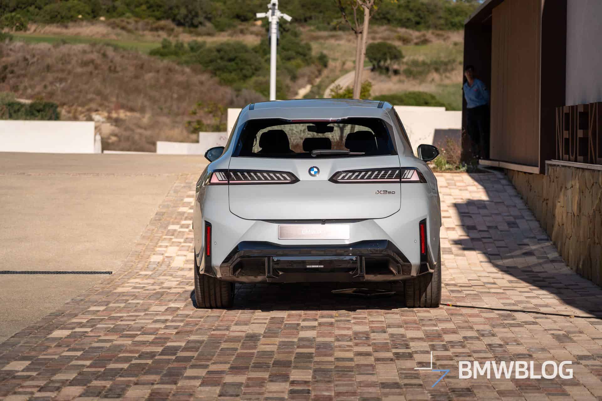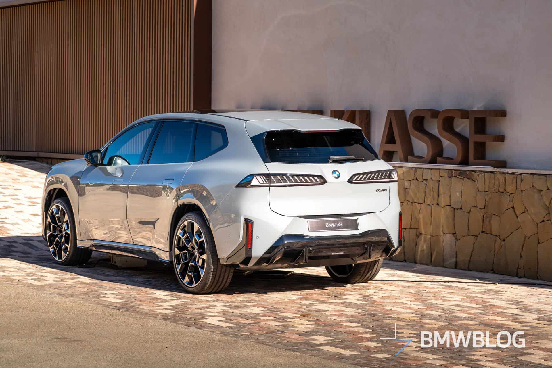 As you’d expect from a media event, BMW is putting its best foot forward with a high-end specification. This iX3, painted in M Brooklyn Grey Metallic, features the M Sport Package Pro, which adds extended glossy black accents. Unlike the non-Pro version, where the side mirror caps and rear diffuser are body-colored, they’re black here.