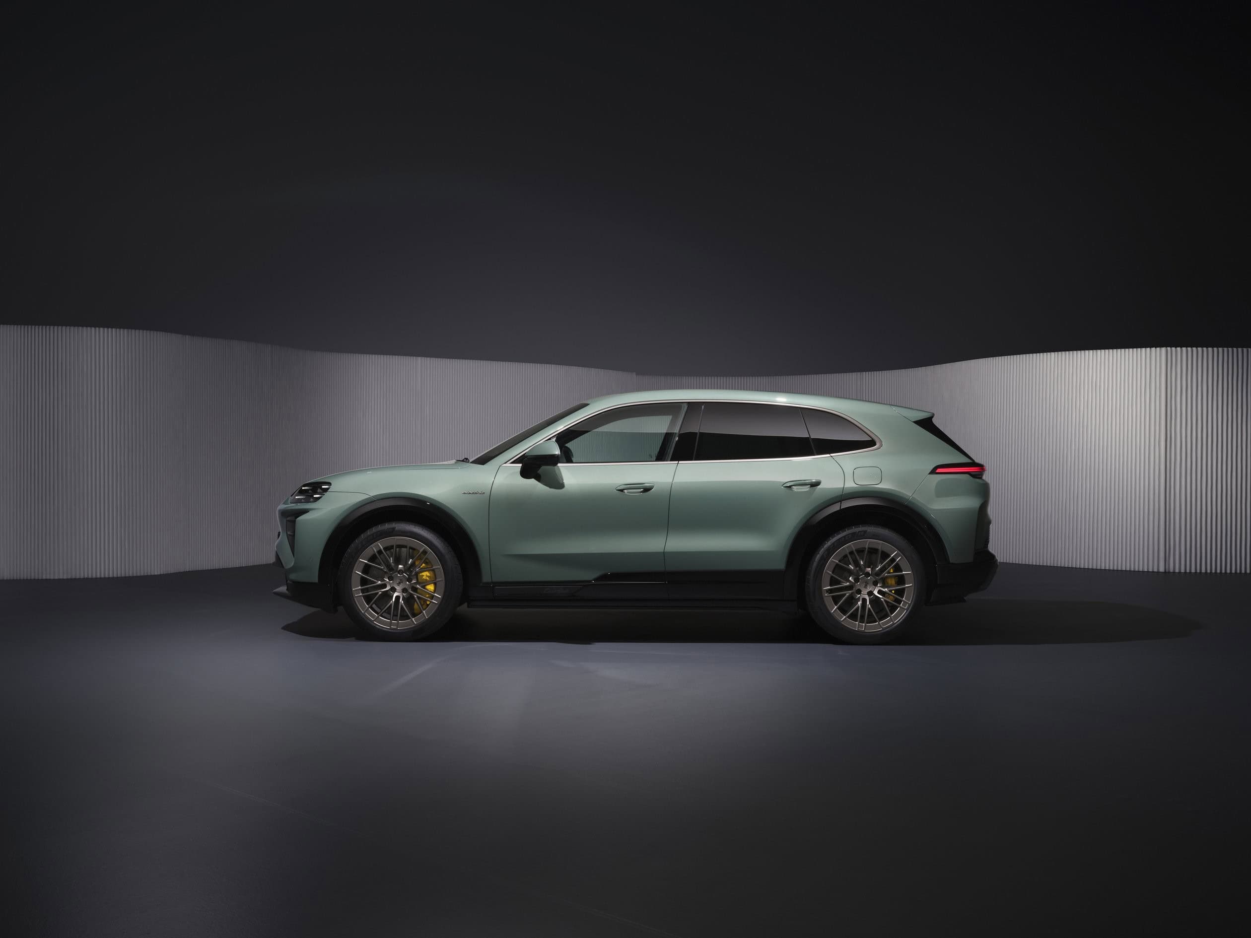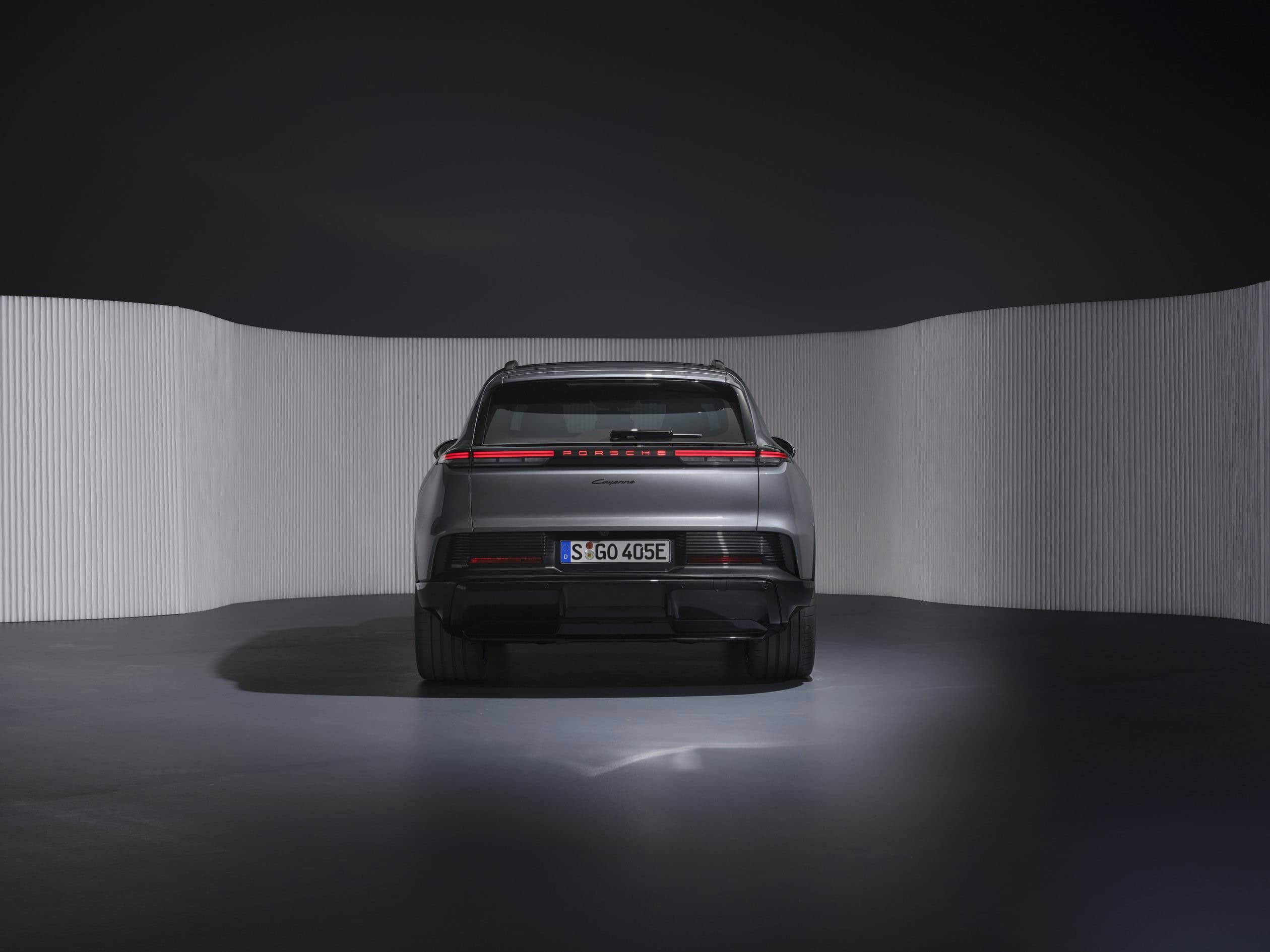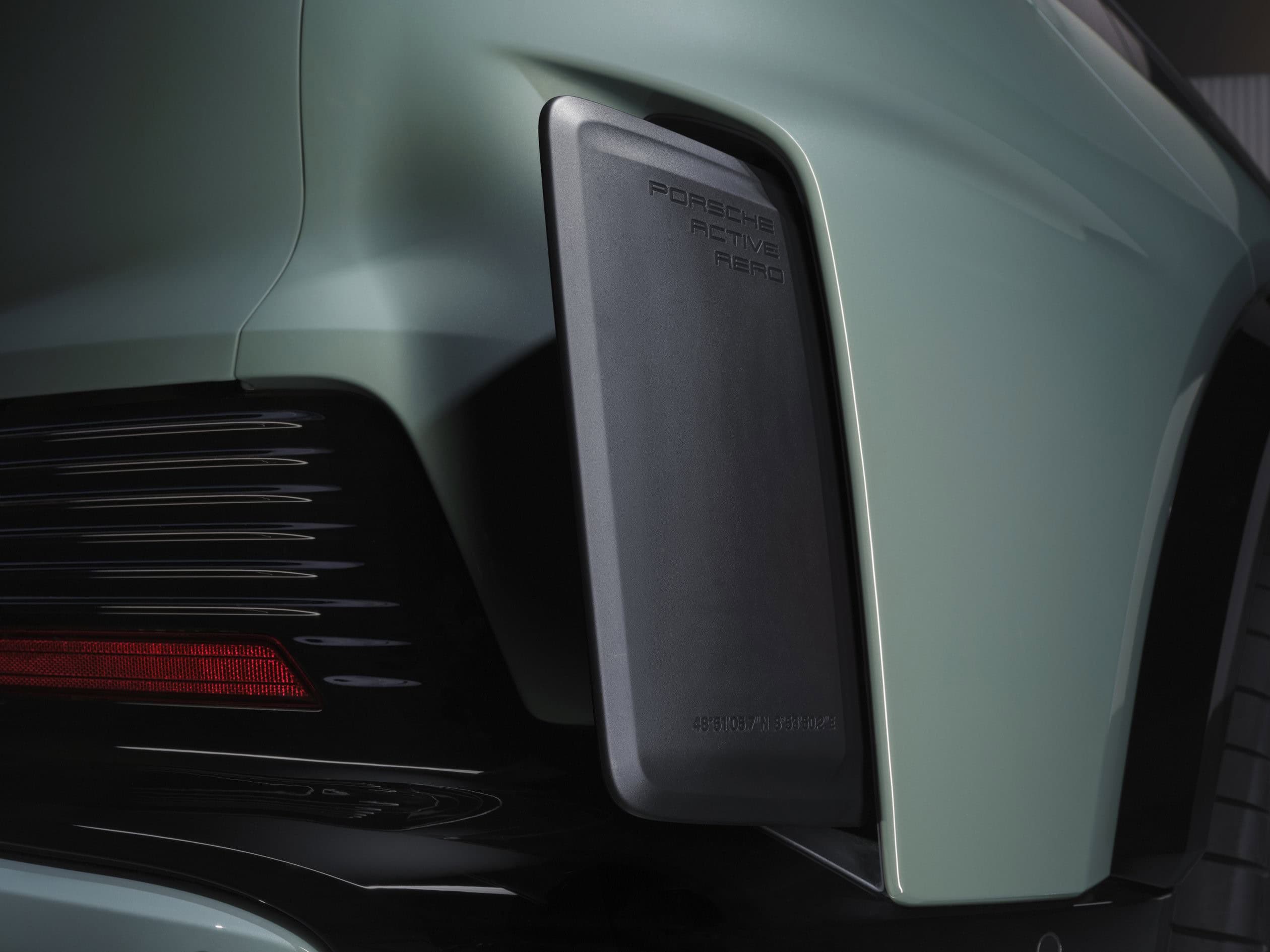 Additional aero-friendly tweaks over a conventionally powered Cayenne include bespoke wheels and a redesigned rear diffuser. The electric SUV’s underbody is nearly completely enclosed, while the front incorporates air curtains below the familiar headlights.