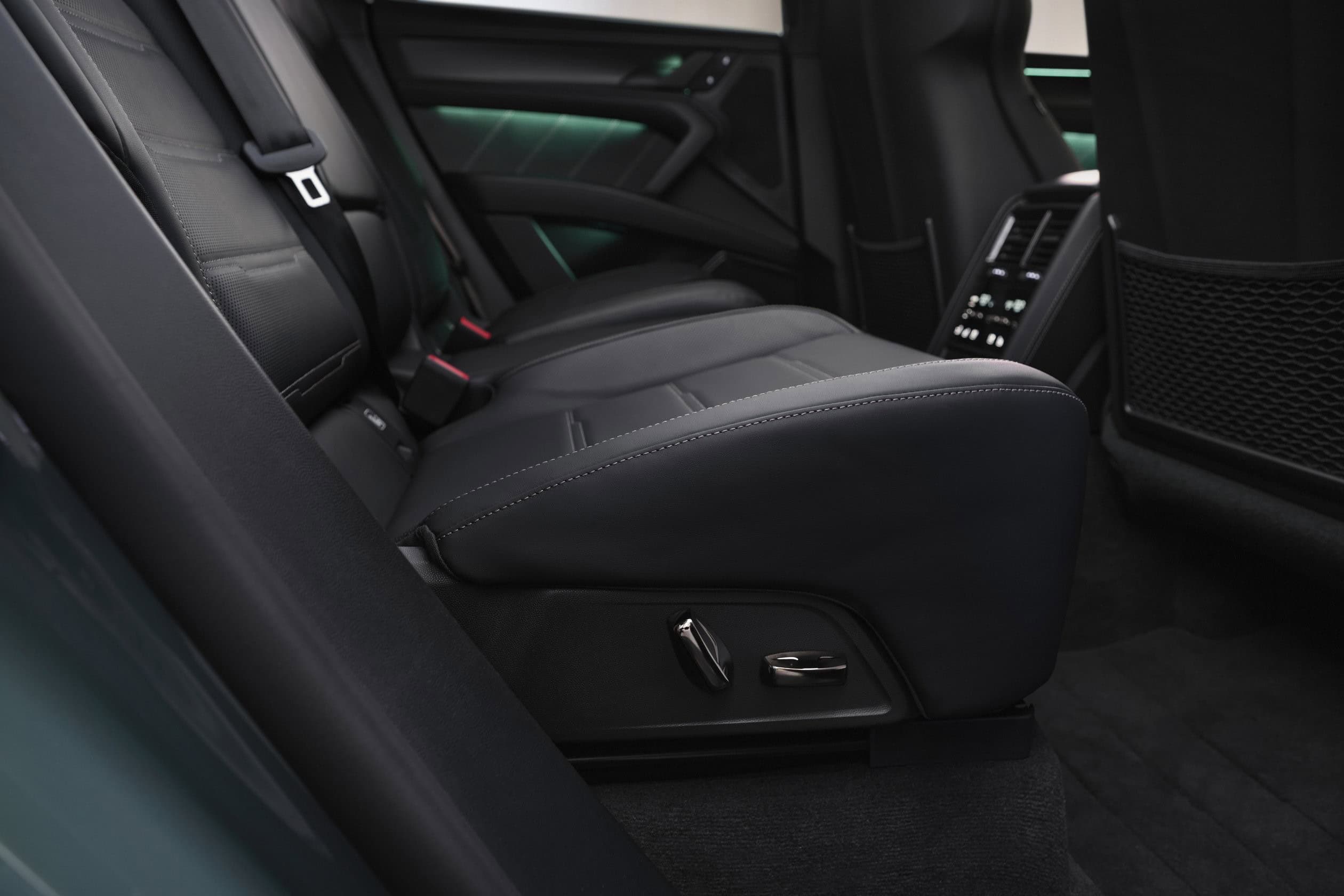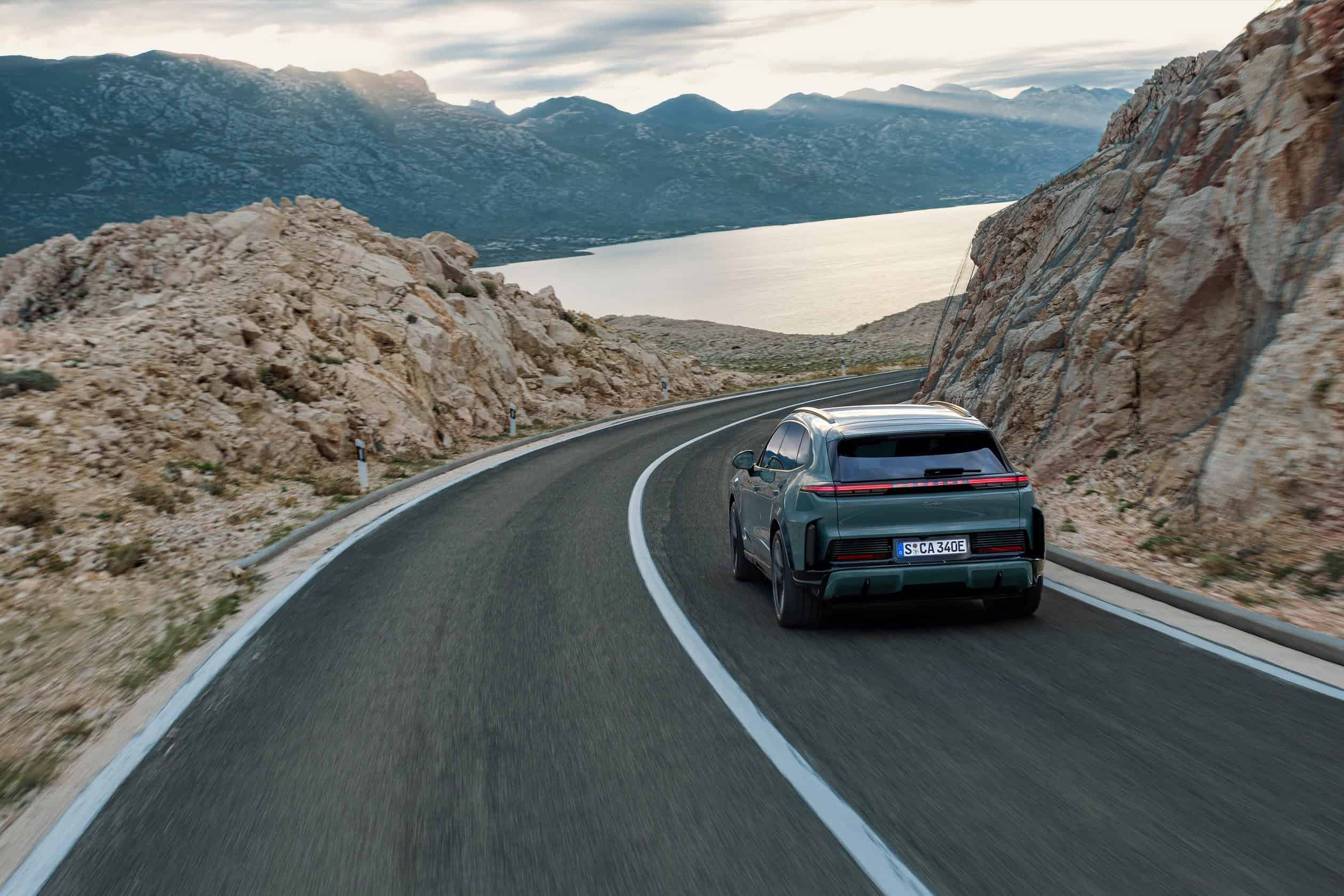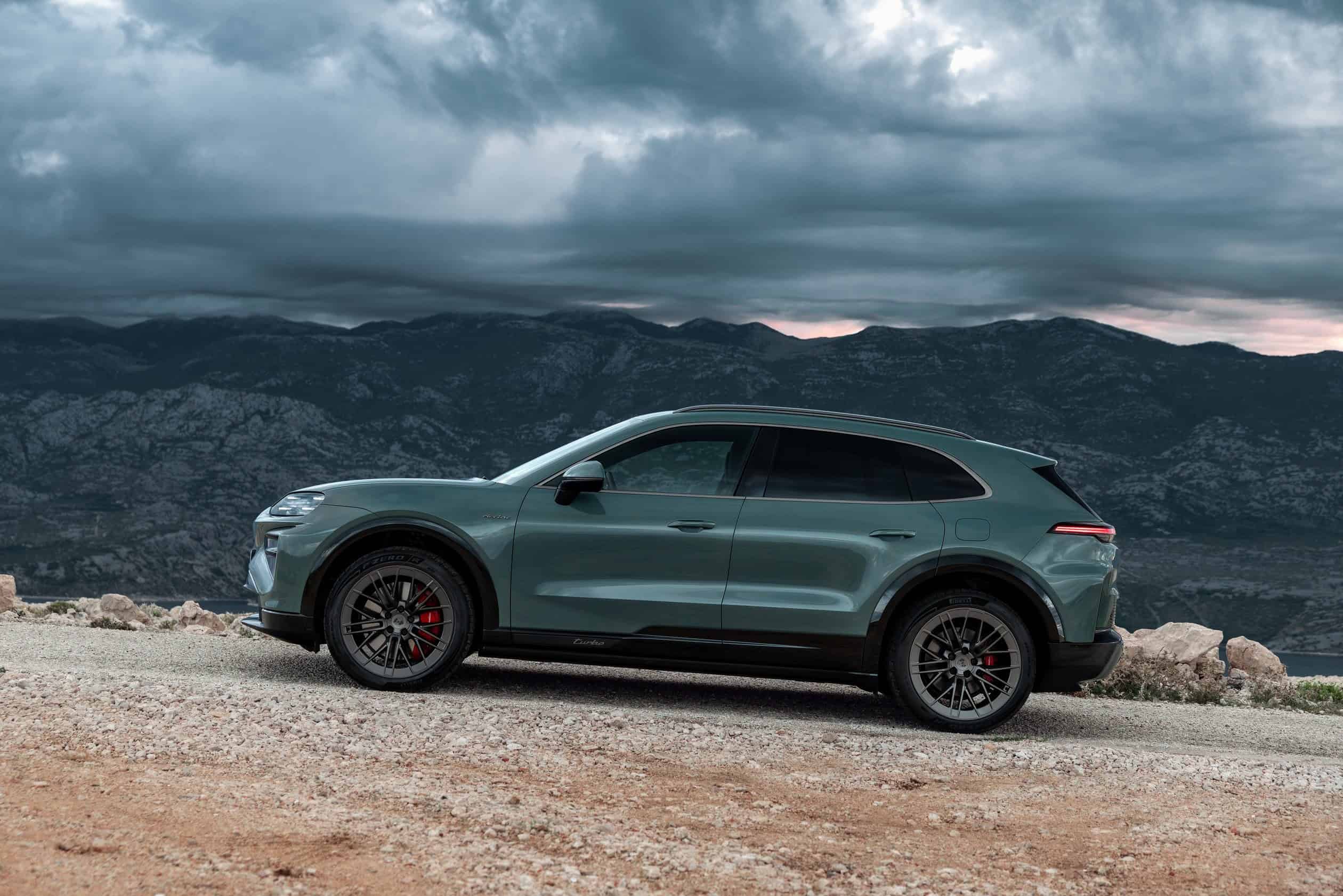 Additional aero-friendly tweaks over a conventionally powered Cayenne include bespoke wheels and a redesigned rear diffuser. The electric SUV’s underbody is nearly completely enclosed, while the front incorporates air curtains below the familiar headlights.