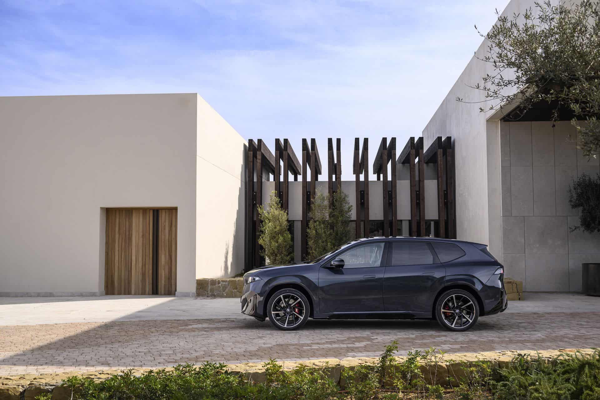 The Polarized Grey iX3 seen here wears the M Sport Pro Package, which adds darker exterior elements and gives the SUV a more assertive presence. Compared to the standard M Sport Package, the Pro specification introduces a black kidney surround, black mirror caps, and a high-gloss black diffuser insert. Red-painted M Sport brake calipers complete the exterior upgrades. Combined with the 21-inch 1050 M wheels, the SUV takes on a more road-focused, sporty look.