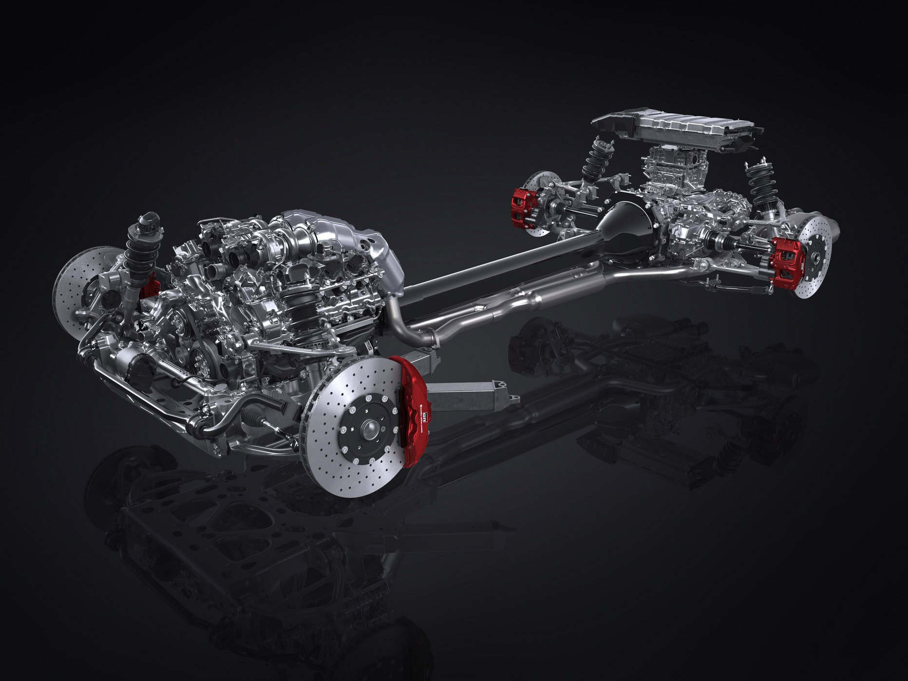 Those projected numbers factor in an electric motor mounted within the transaxle. Yes, the GR GT is a hybrid, an especially exciting one. Everything goes to the rear wheels, and the V8 feeds an all-new eight-speed automatic transmission that works with a mechanical limited-slip differential.