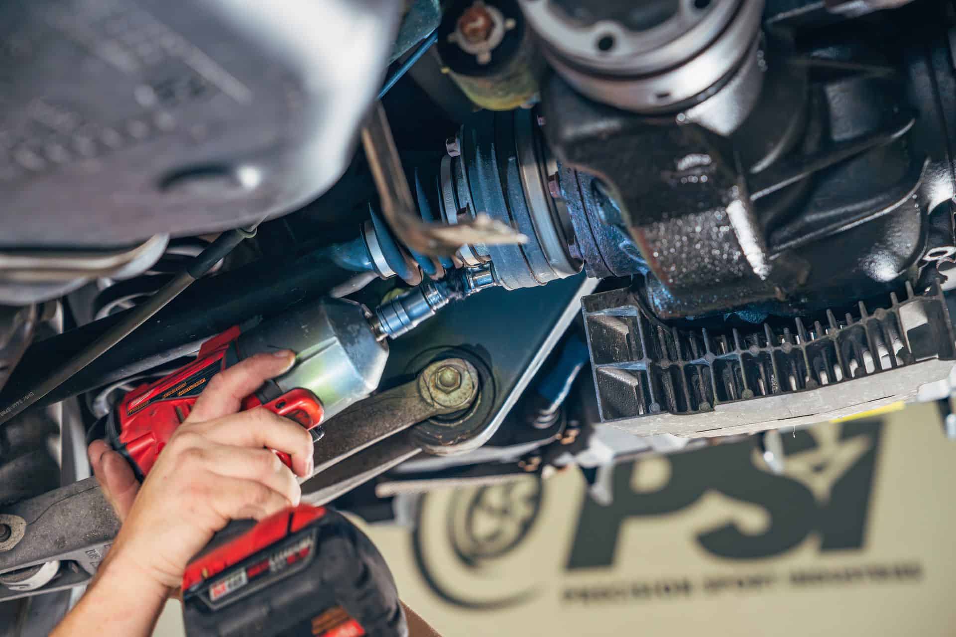 PSI started with a full inspection and then moved through the car methodically. The rear differential was replaced with a rebuilt Diffsonline unit, tightening driveline response and removing the slight slack that begins to creep in with age. Underneath, the oil pan gasket and hardware were replaced before leaks ever had a chance to start. Spark plugs were refreshed, and the diverter valves, breather hose, and charge pipe were all renewed — the charge pipe had already failed, so that one wasn’t optional. The engine was filled with fresh Motul 5W40 to complete the service.